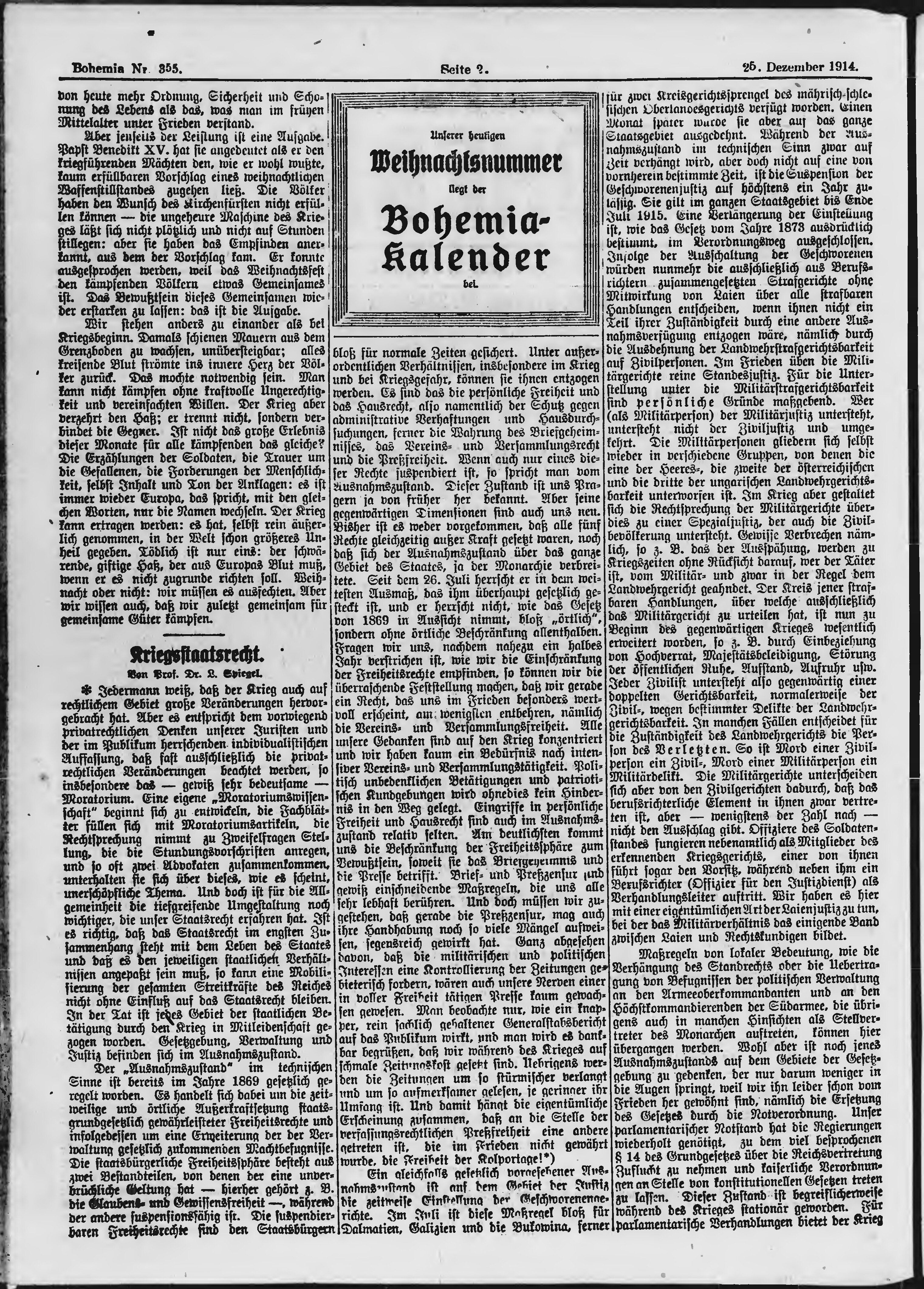 * Datum vydání výtisku: 25.12.1914 Číslo výtisku: 355 Poznámky k výtisku: ranní vydání;