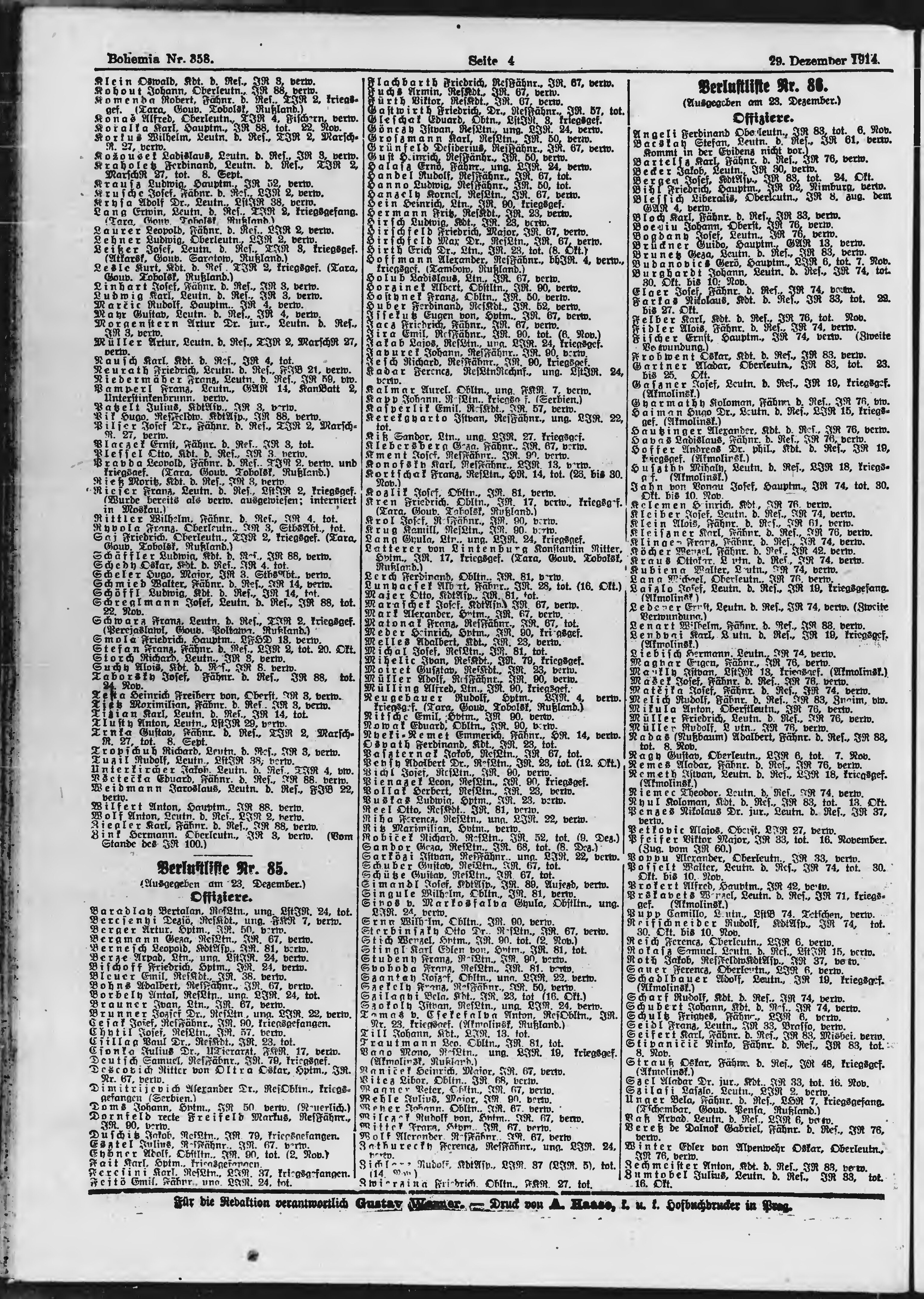 * Datum vydání výtisku: 29.12.1914 Číslo výtisku: 358 Typ výtisku: příloha