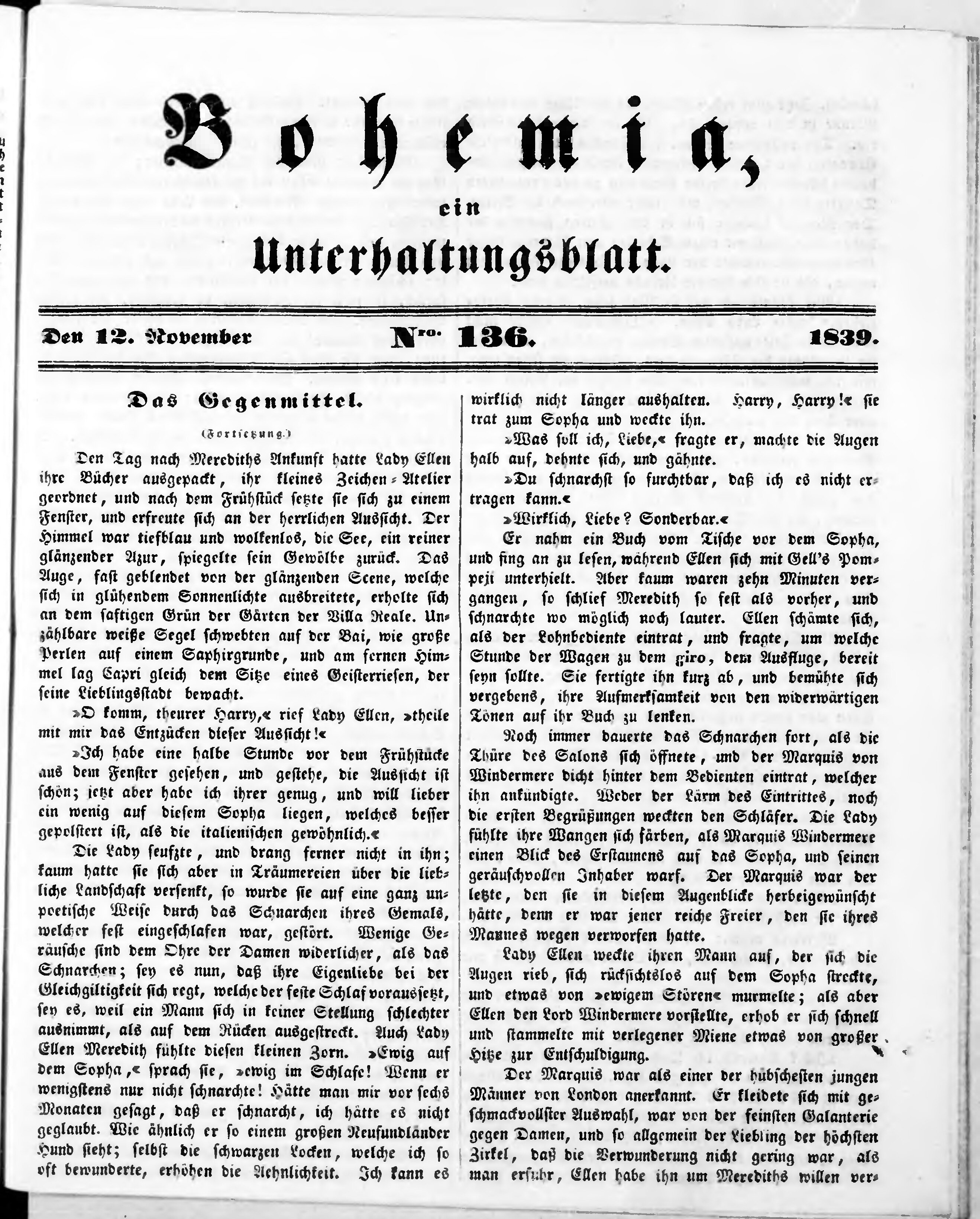 Bohemia, ein Unterhaltungsblatt
