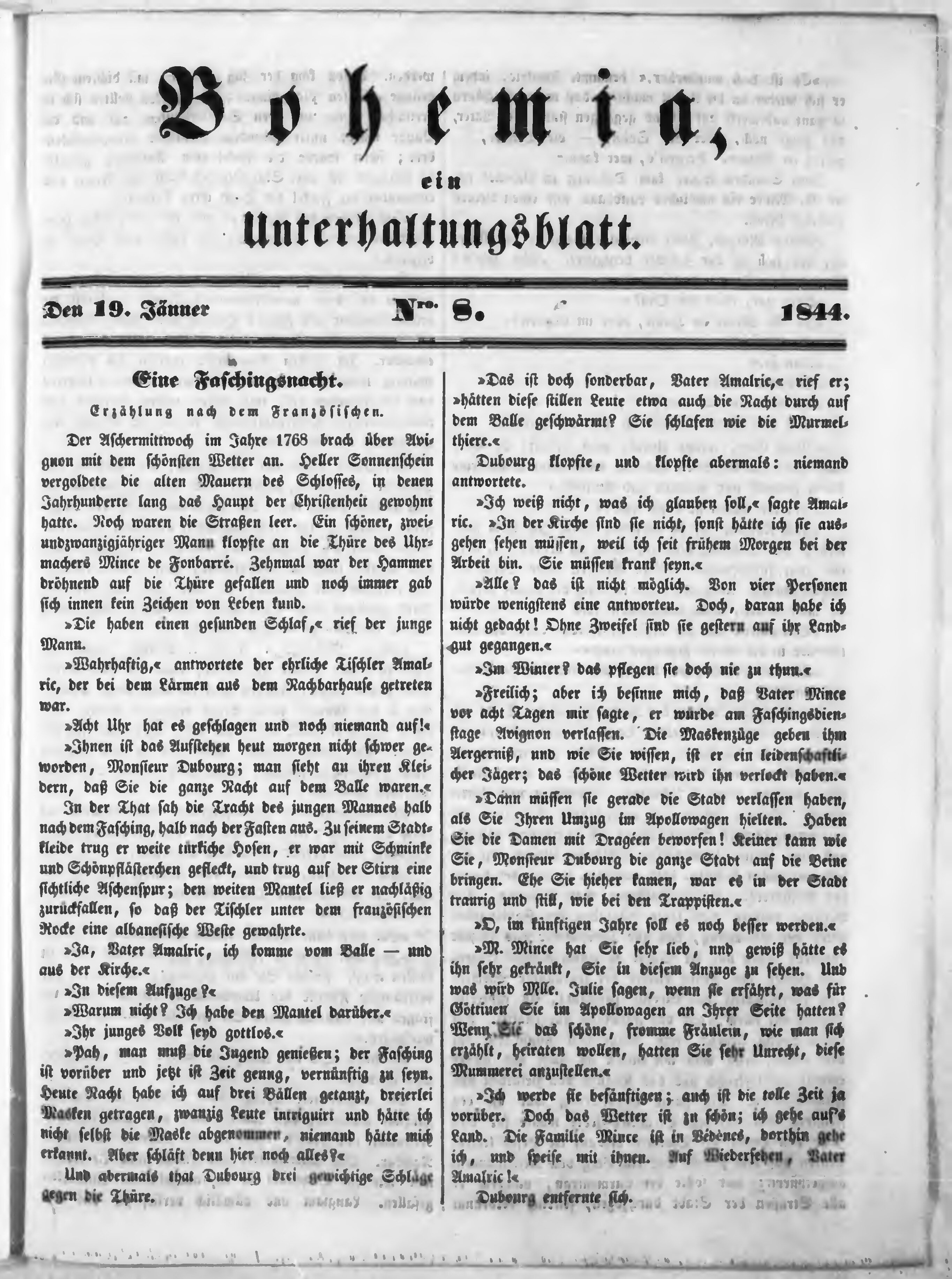 Bohemia, ein Unterhaltungsblatt