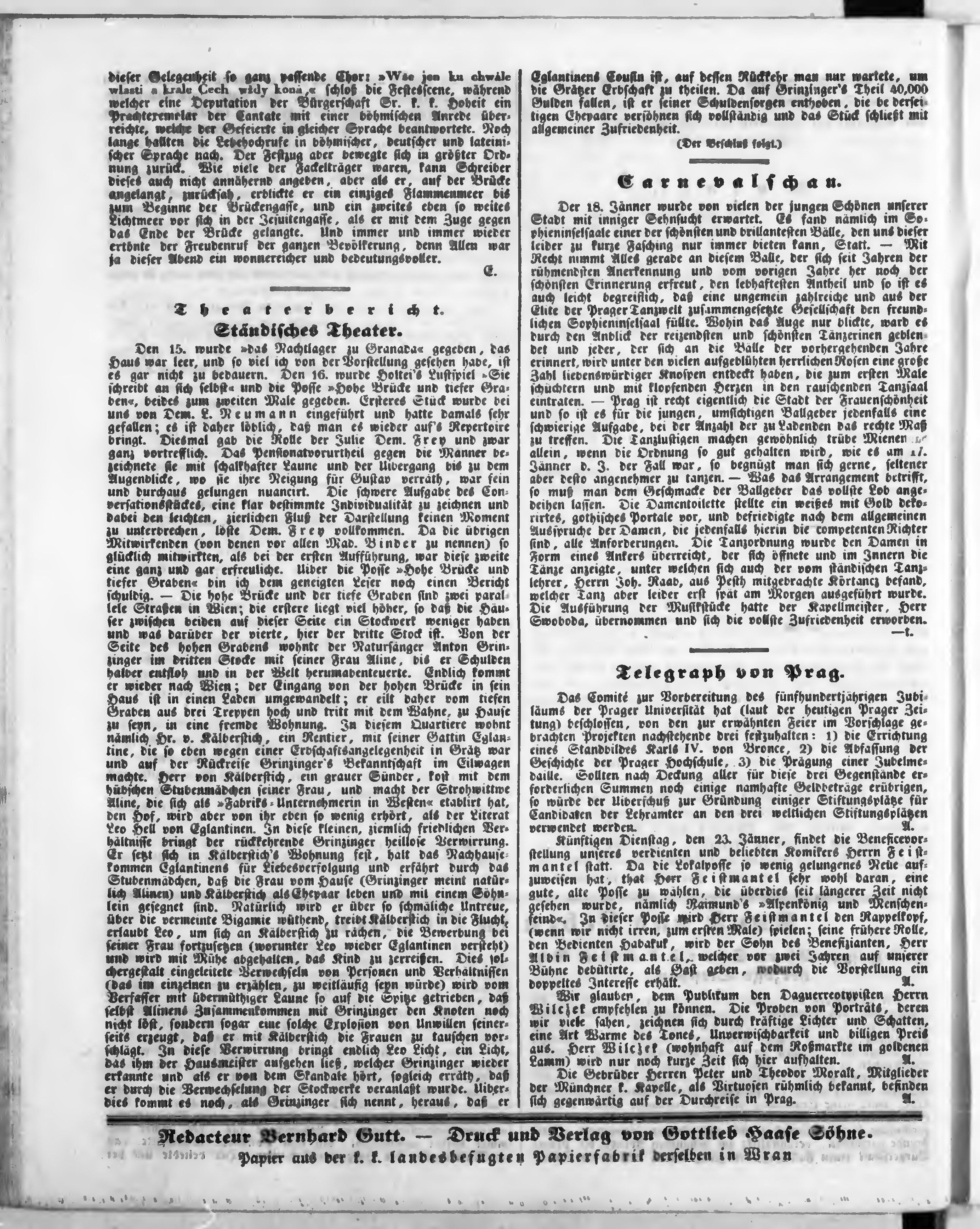 Bohemia, ein Unterhaltungsblatt