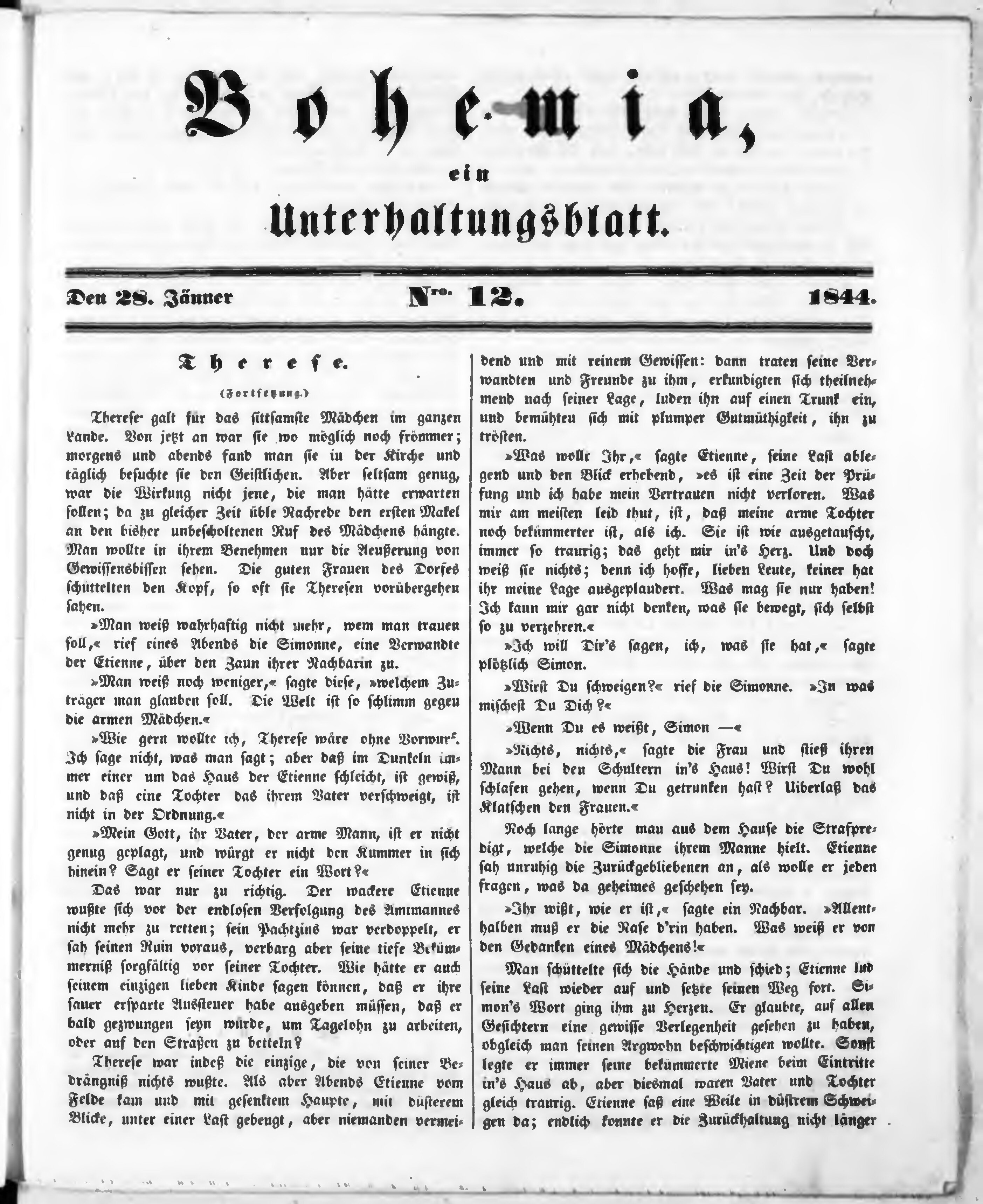 Bohemia, ein Unterhaltungsblatt