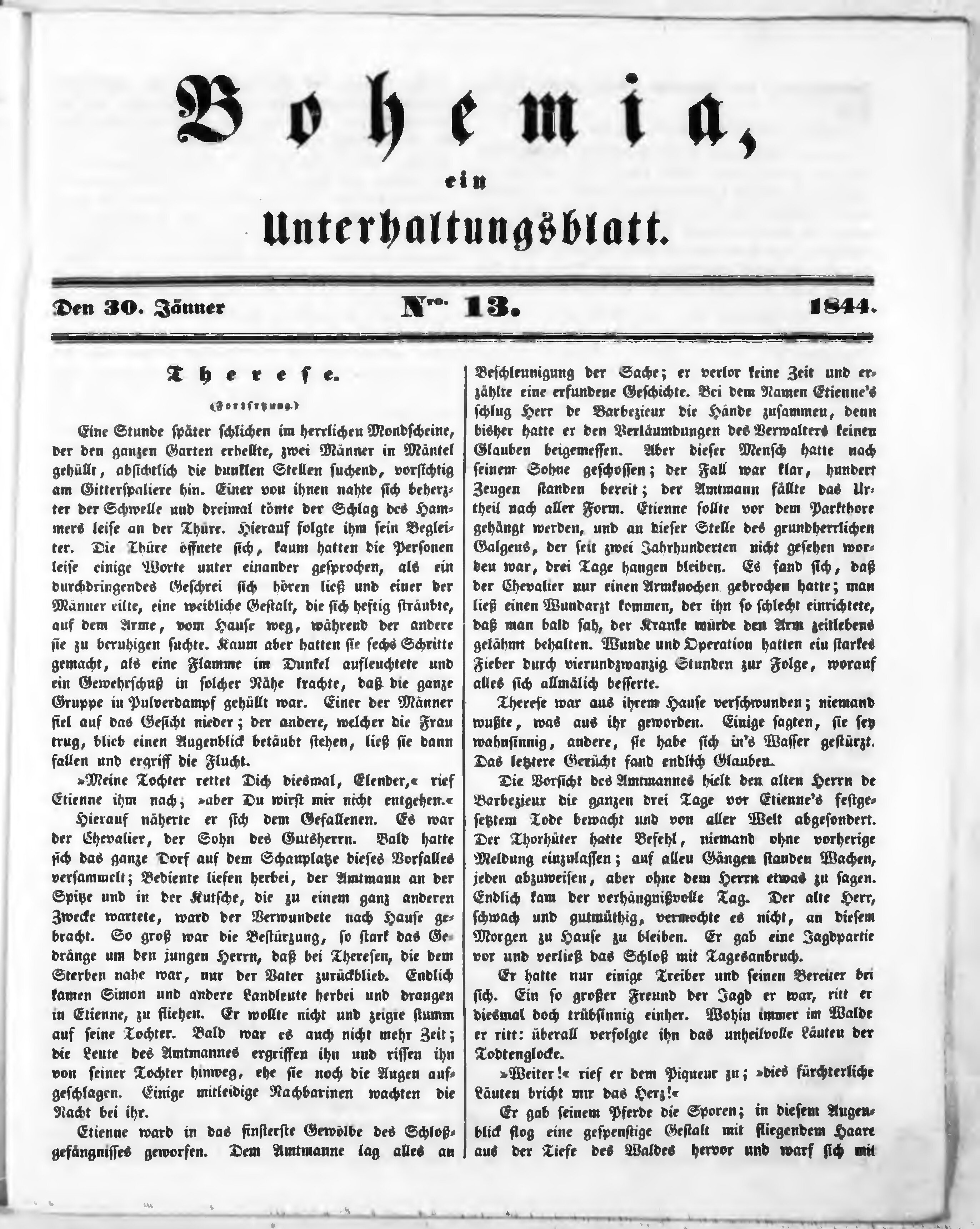 Bohemia, ein Unterhaltungsblatt