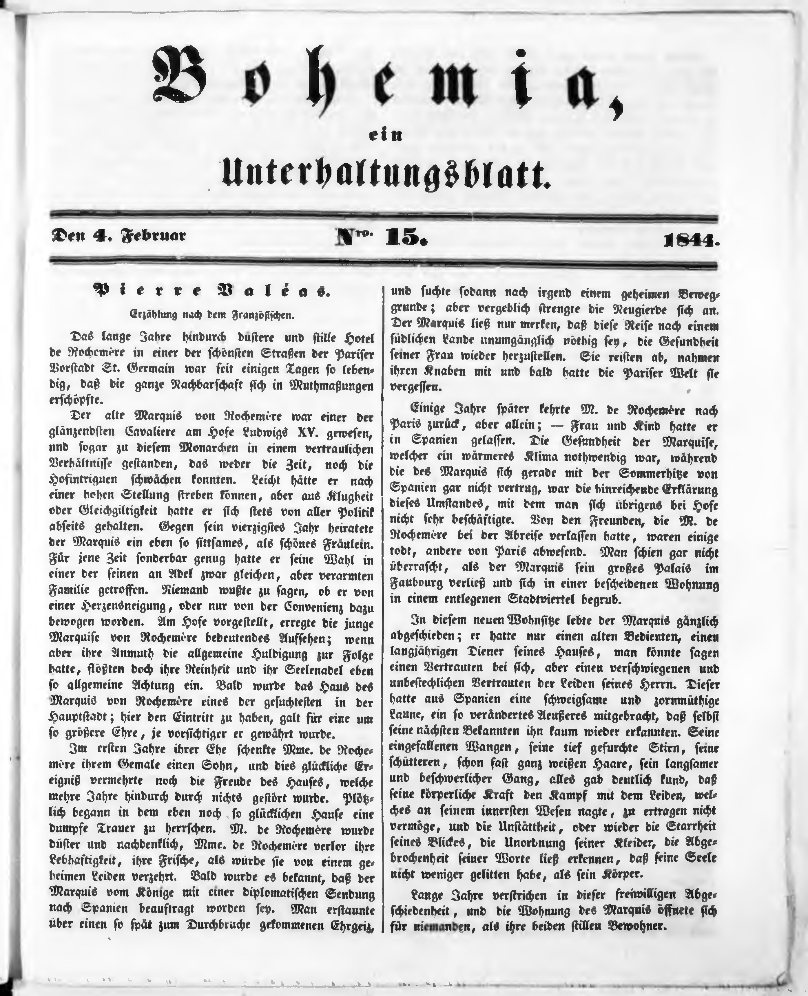 Bohemia, ein Unterhaltungsblatt