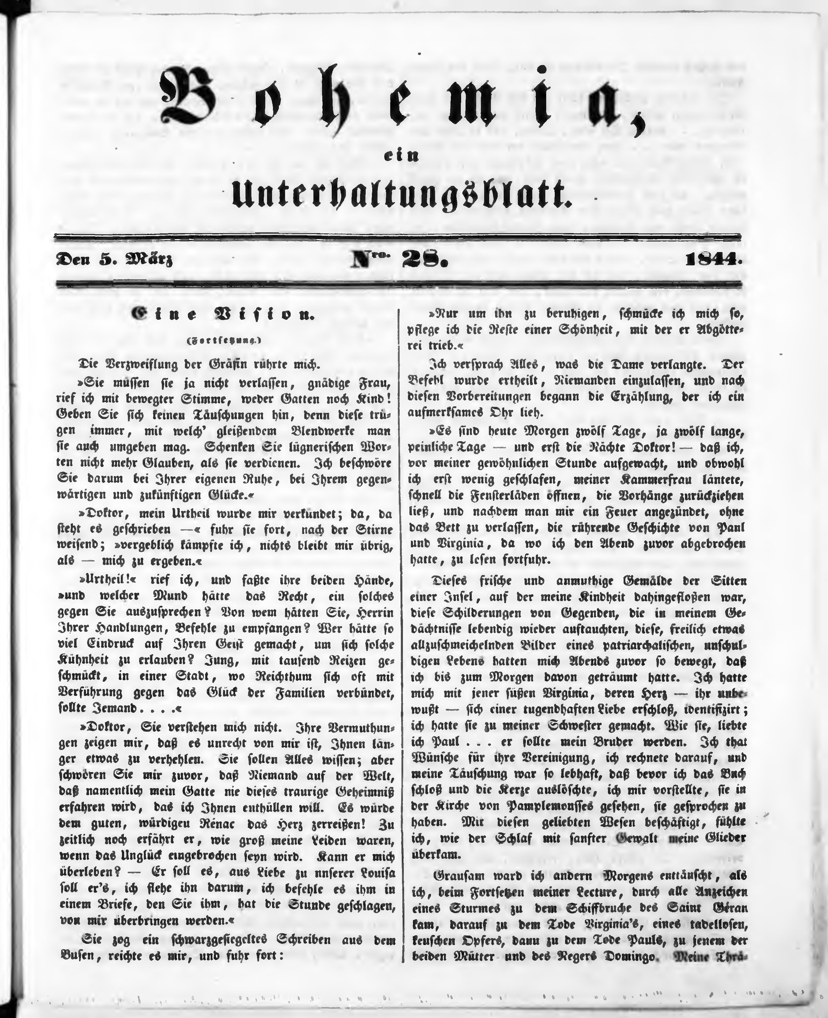 Bohemia, ein Unterhaltungsblatt