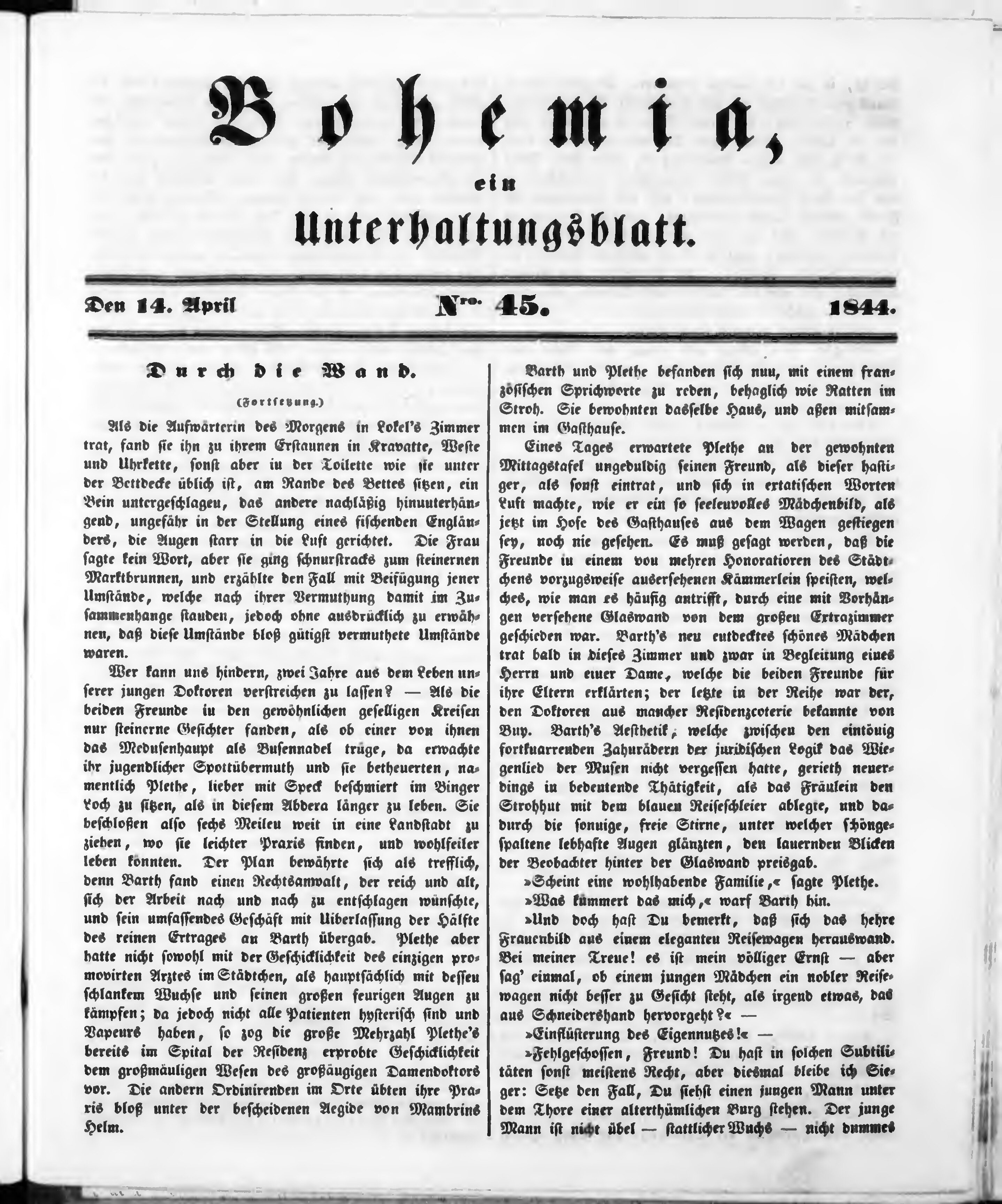 Bohemia, ein Unterhaltungsblatt