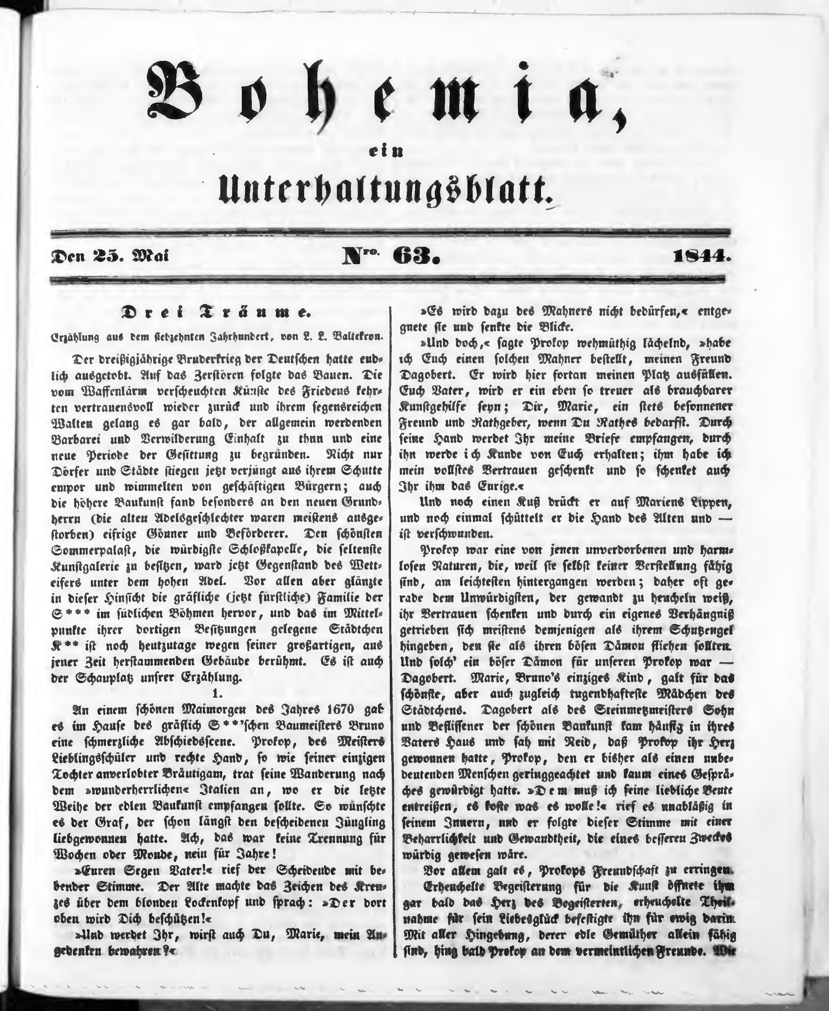 Bohemia, ein Unterhaltungsblatt