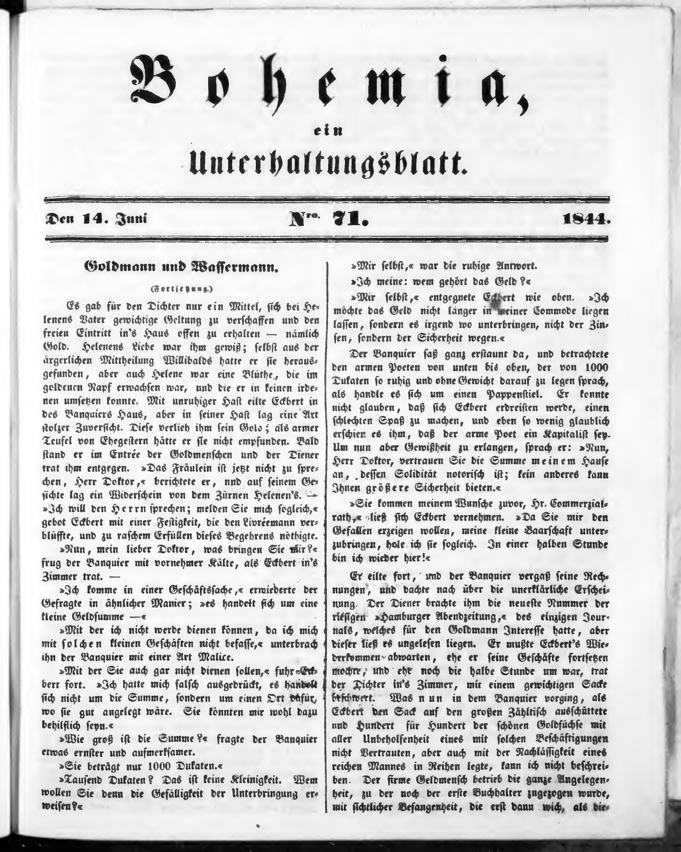Bohemia, ein Unterhaltungsblatt