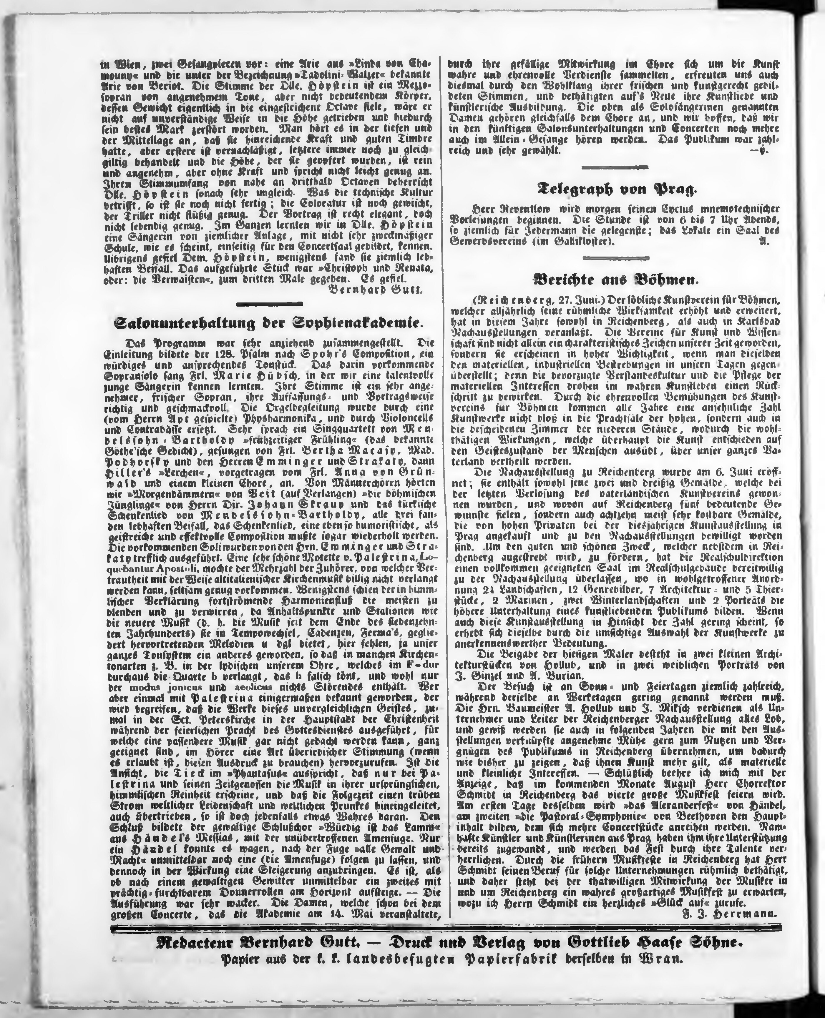 Bohemia, ein Unterhaltungsblatt