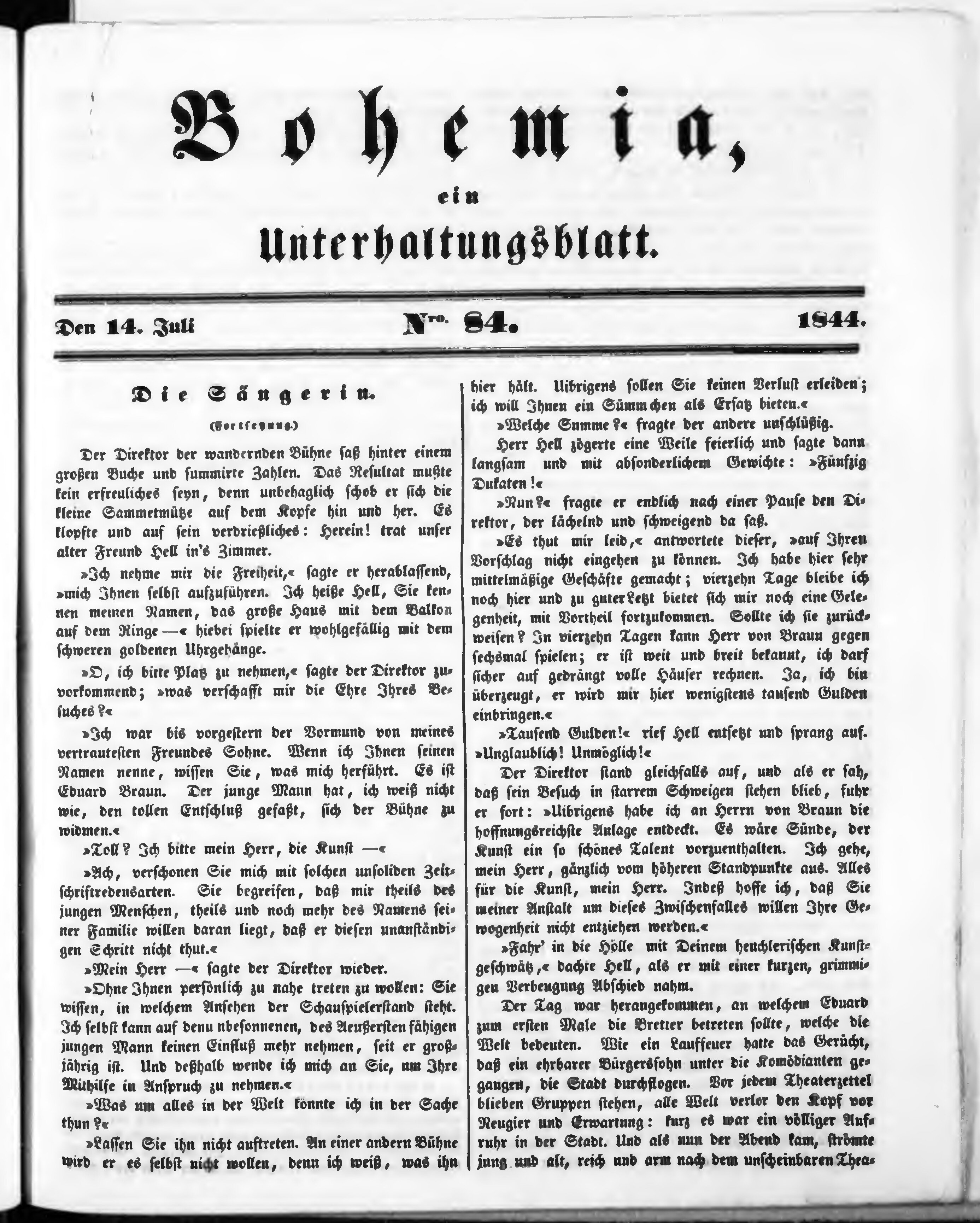 Bohemia, ein Unterhaltungsblatt