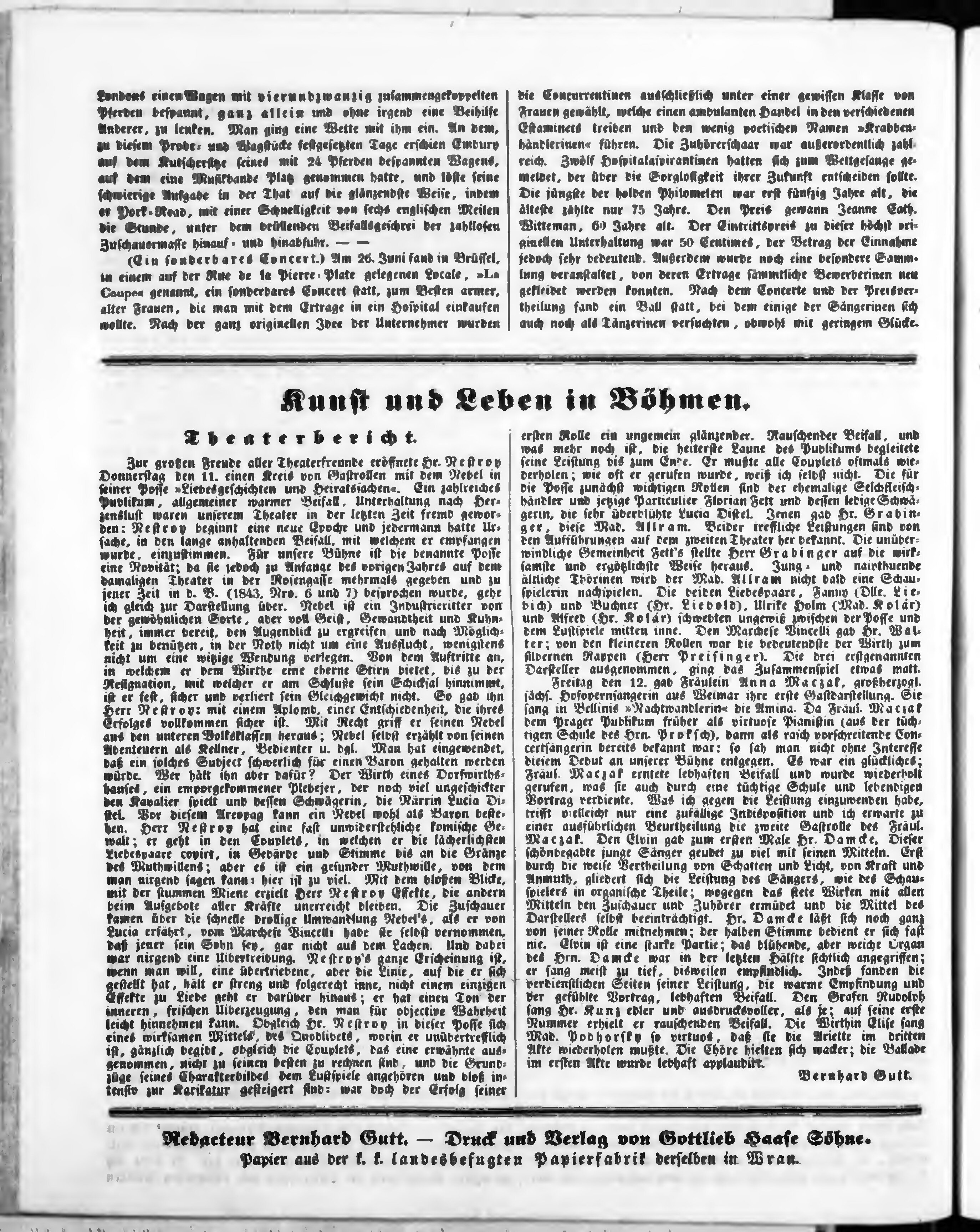 Bohemia, ein Unterhaltungsblatt