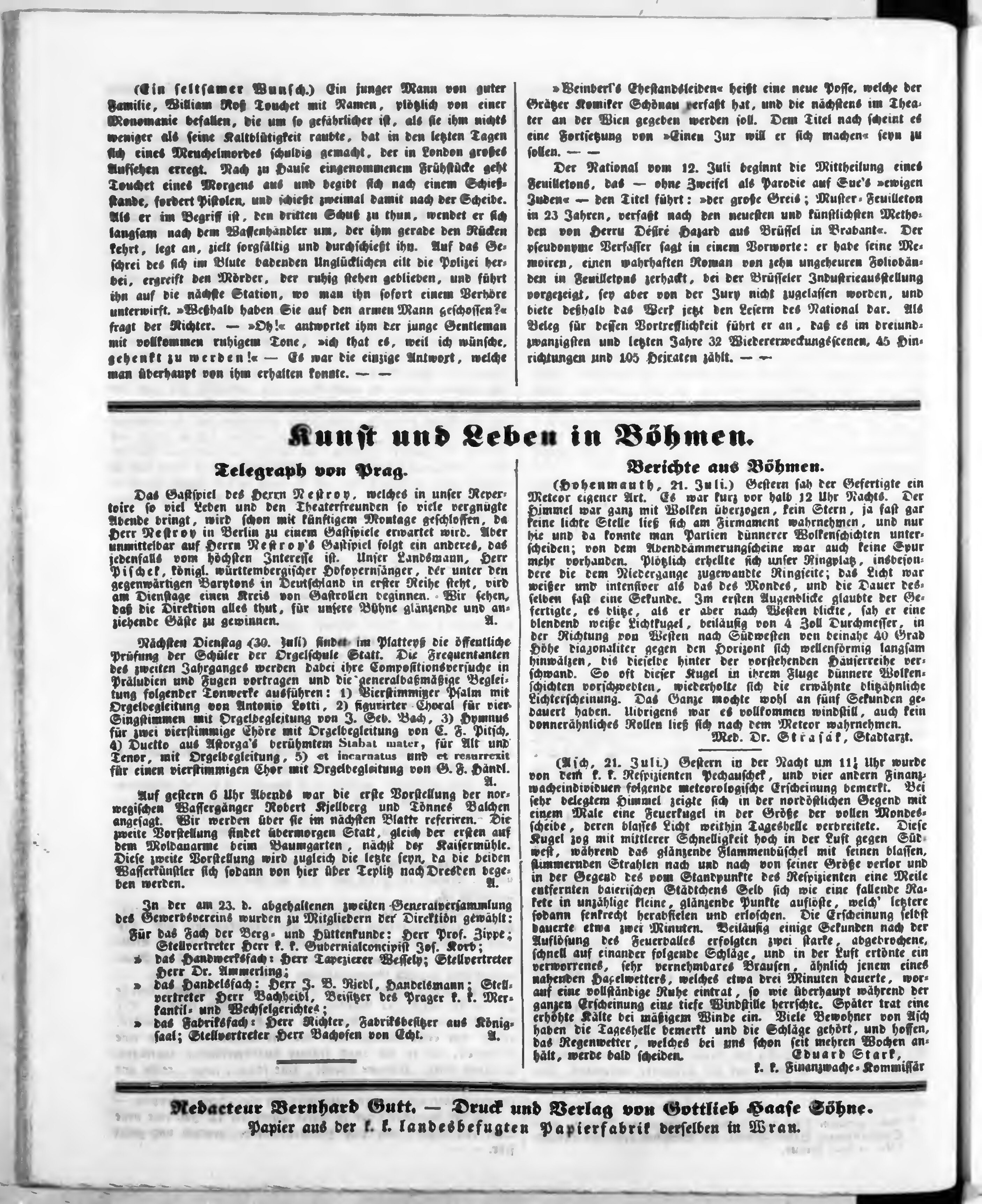 Bohemia, ein Unterhaltungsblatt