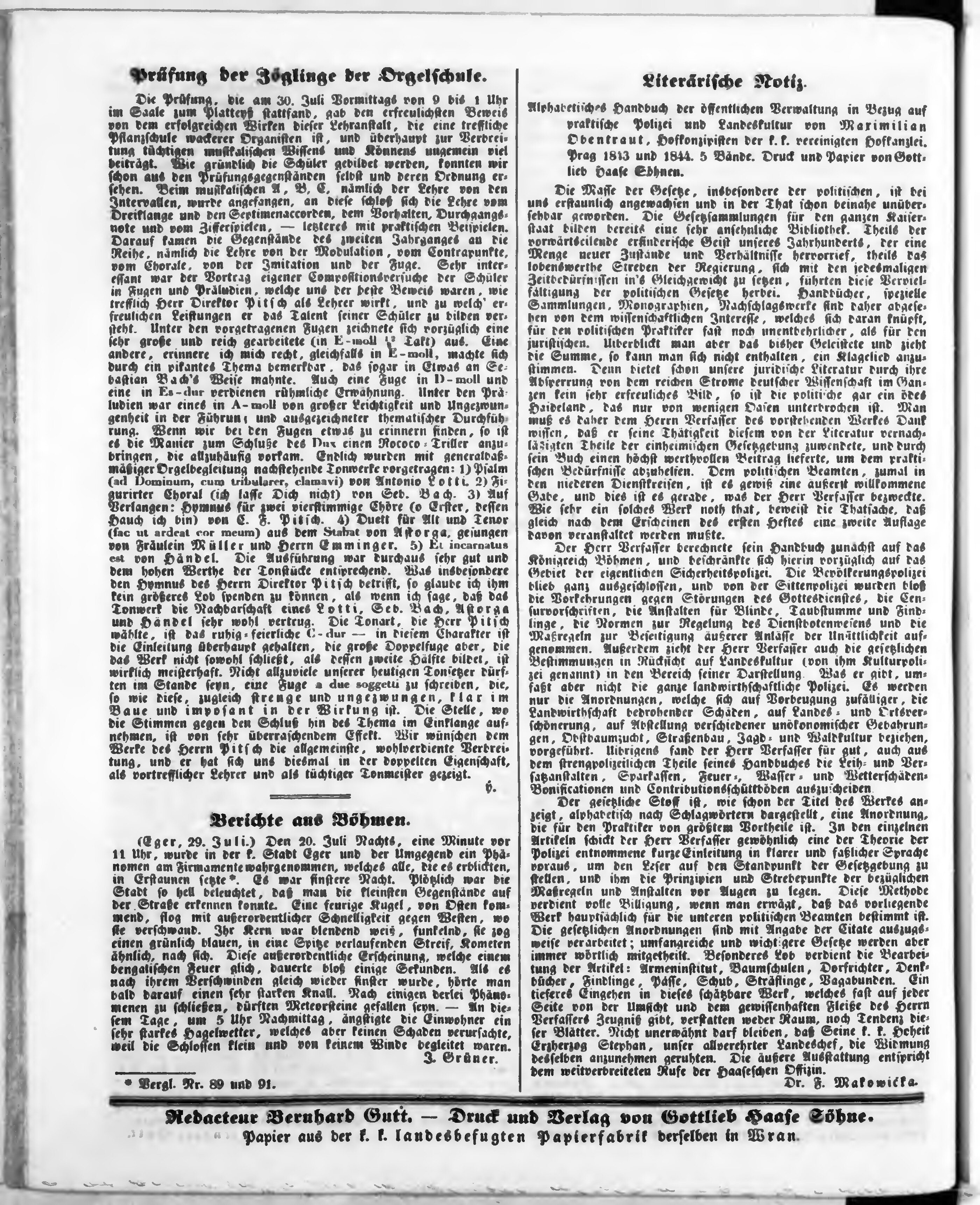 Bohemia, ein Unterhaltungsblatt