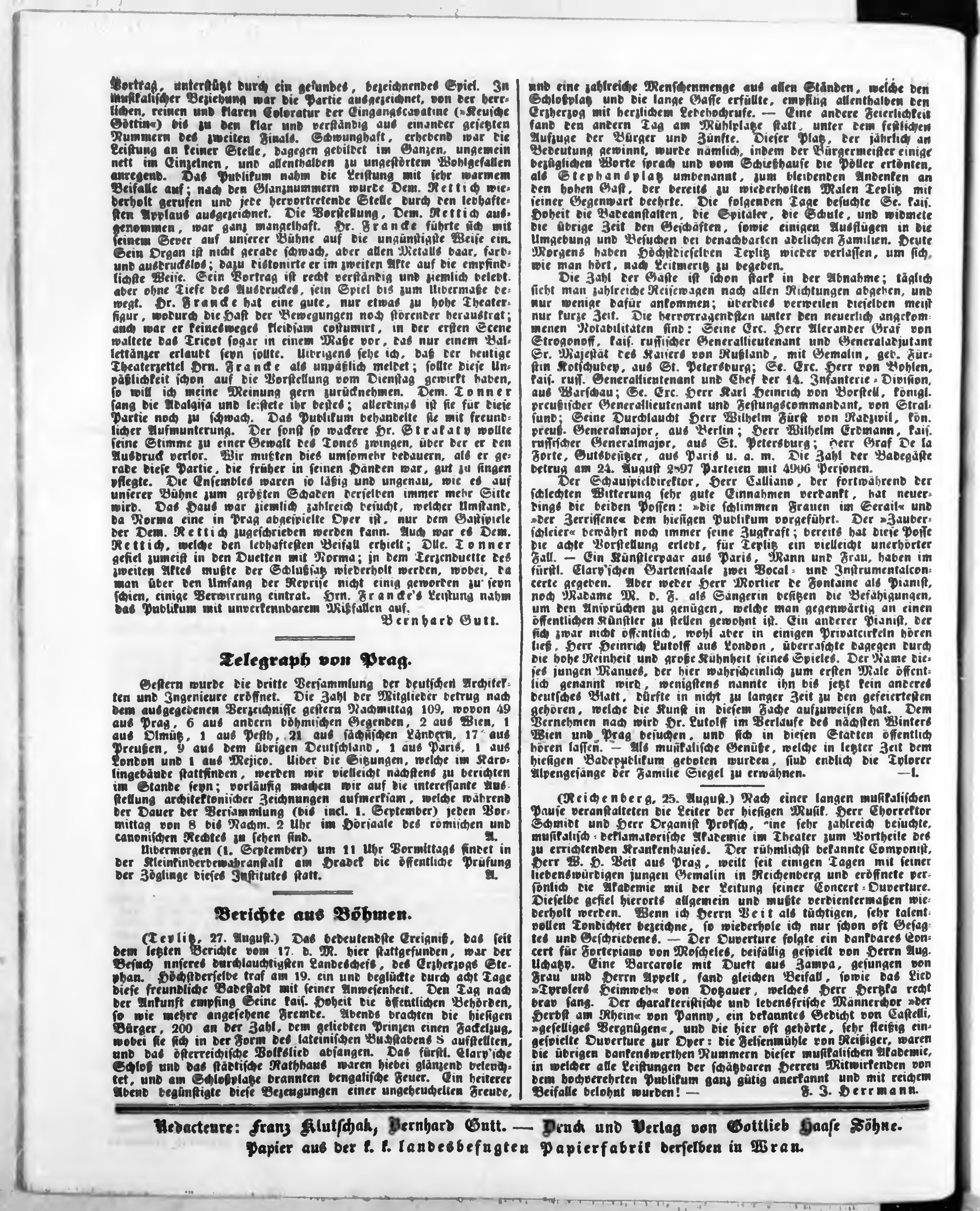 Bohemia, ein Unterhaltungsblatt