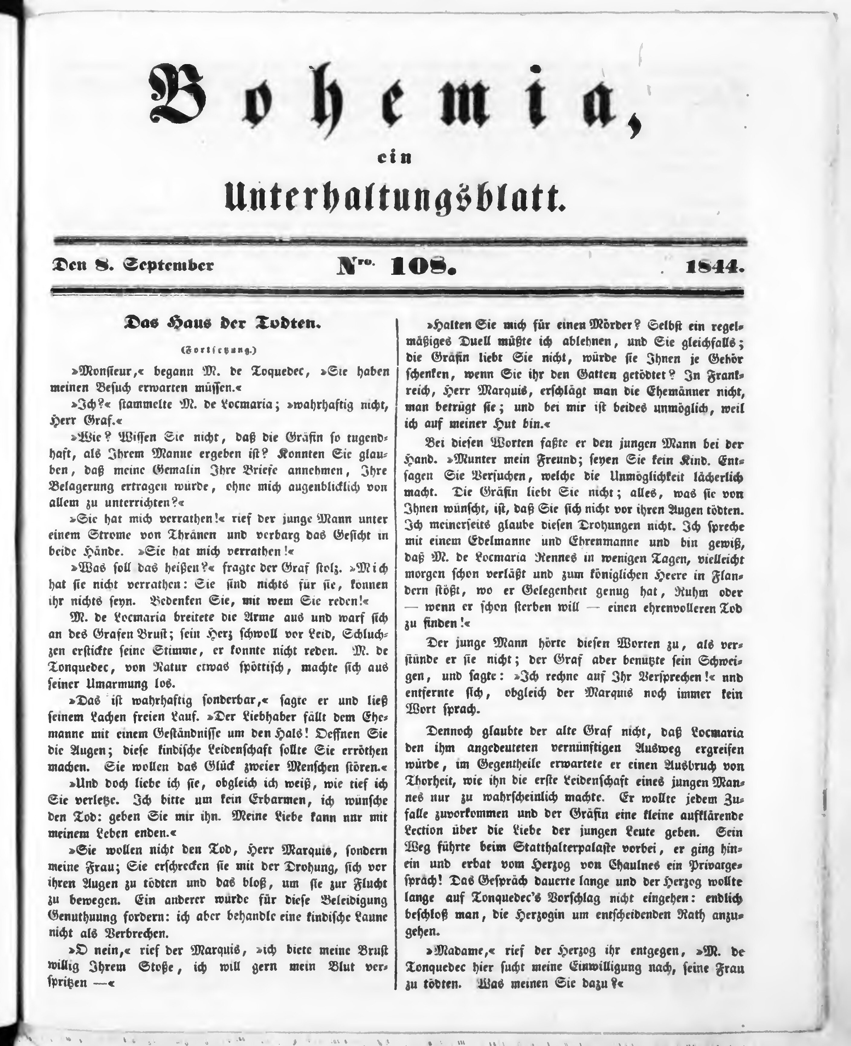 Bohemia, ein Unterhaltungsblatt