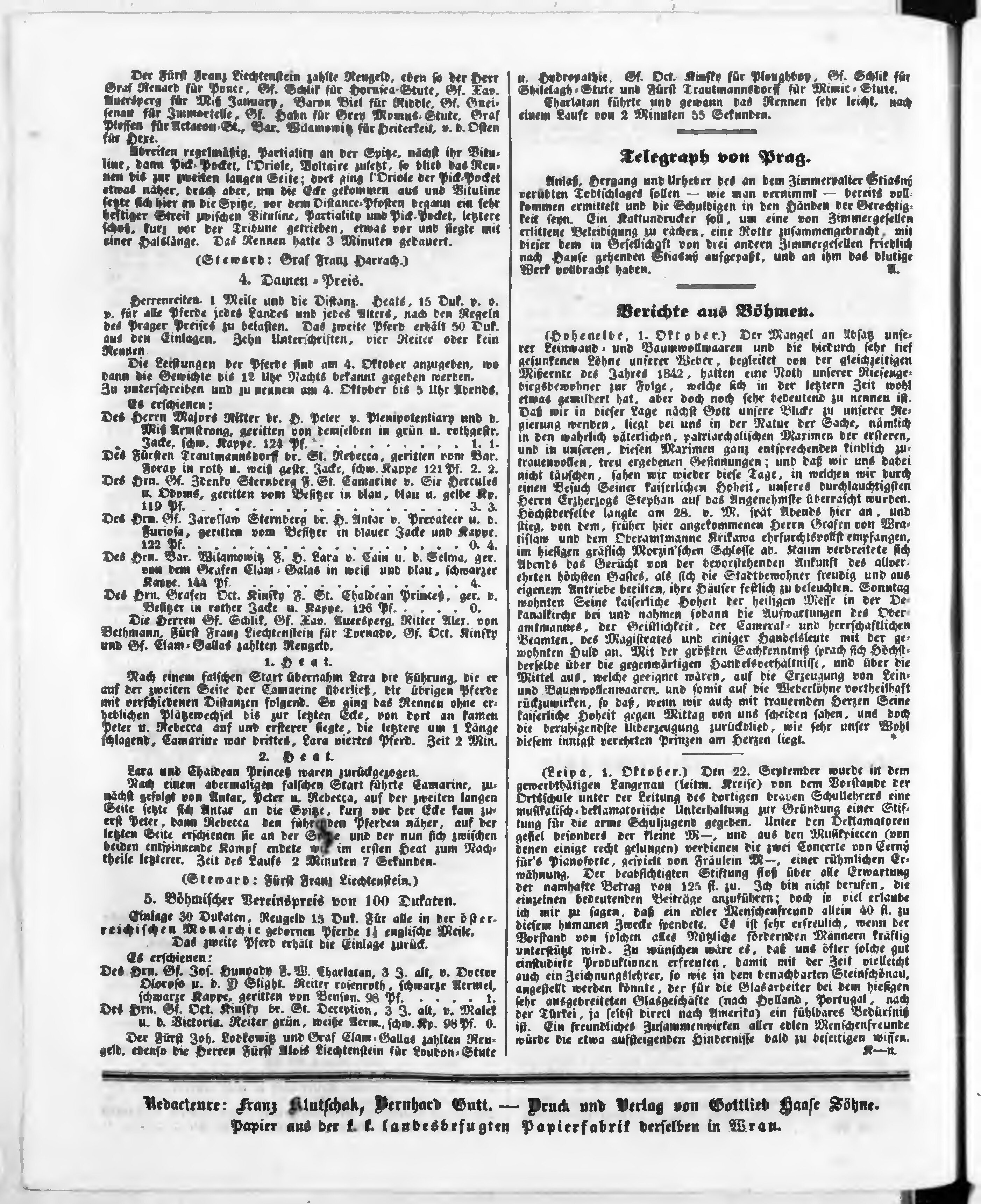 Bohemia, ein Unterhaltungsblatt