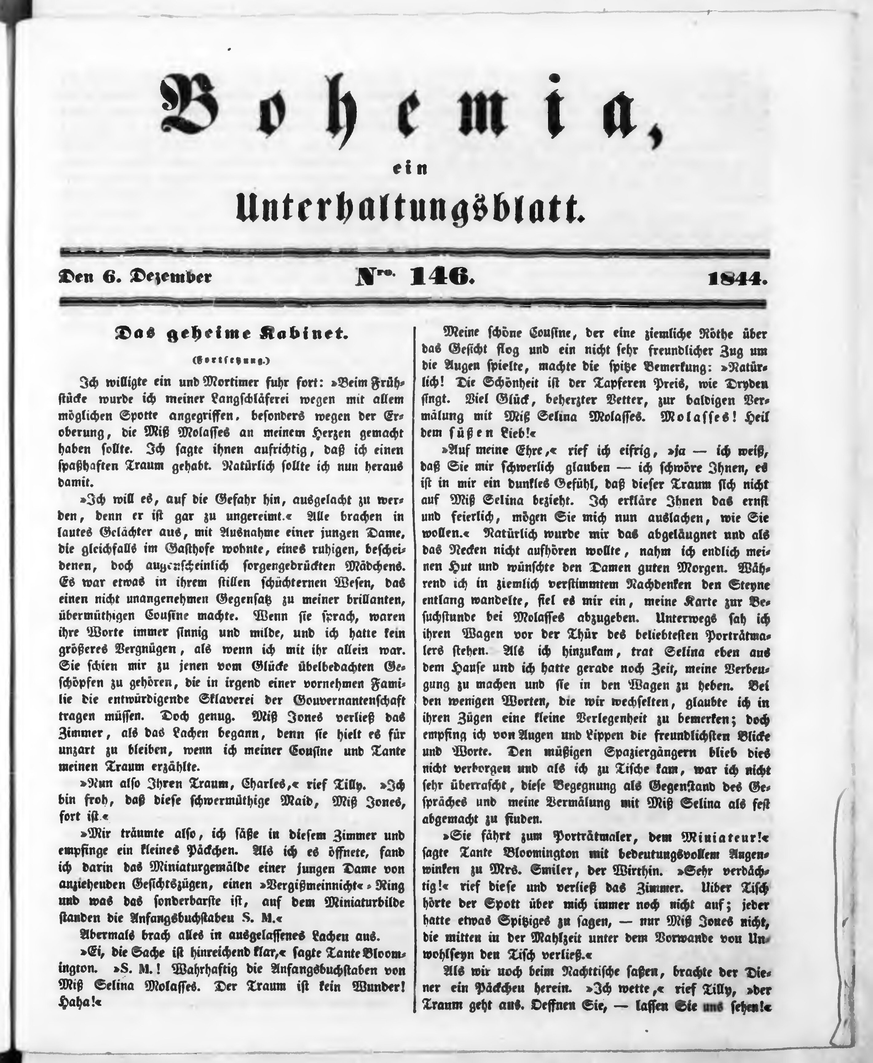 Bohemia, ein Unterhaltungsblatt