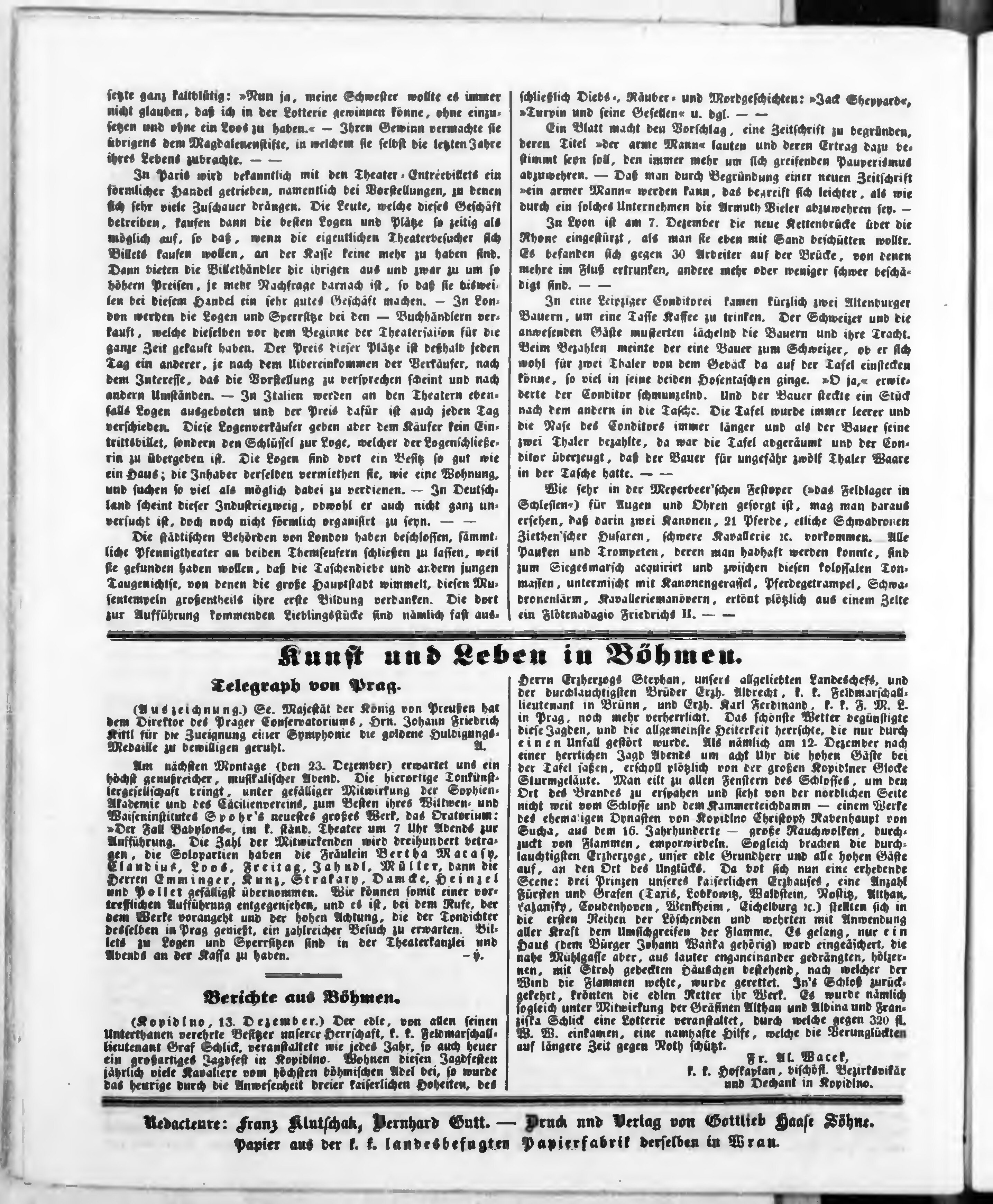 Bohemia, ein Unterhaltungsblatt