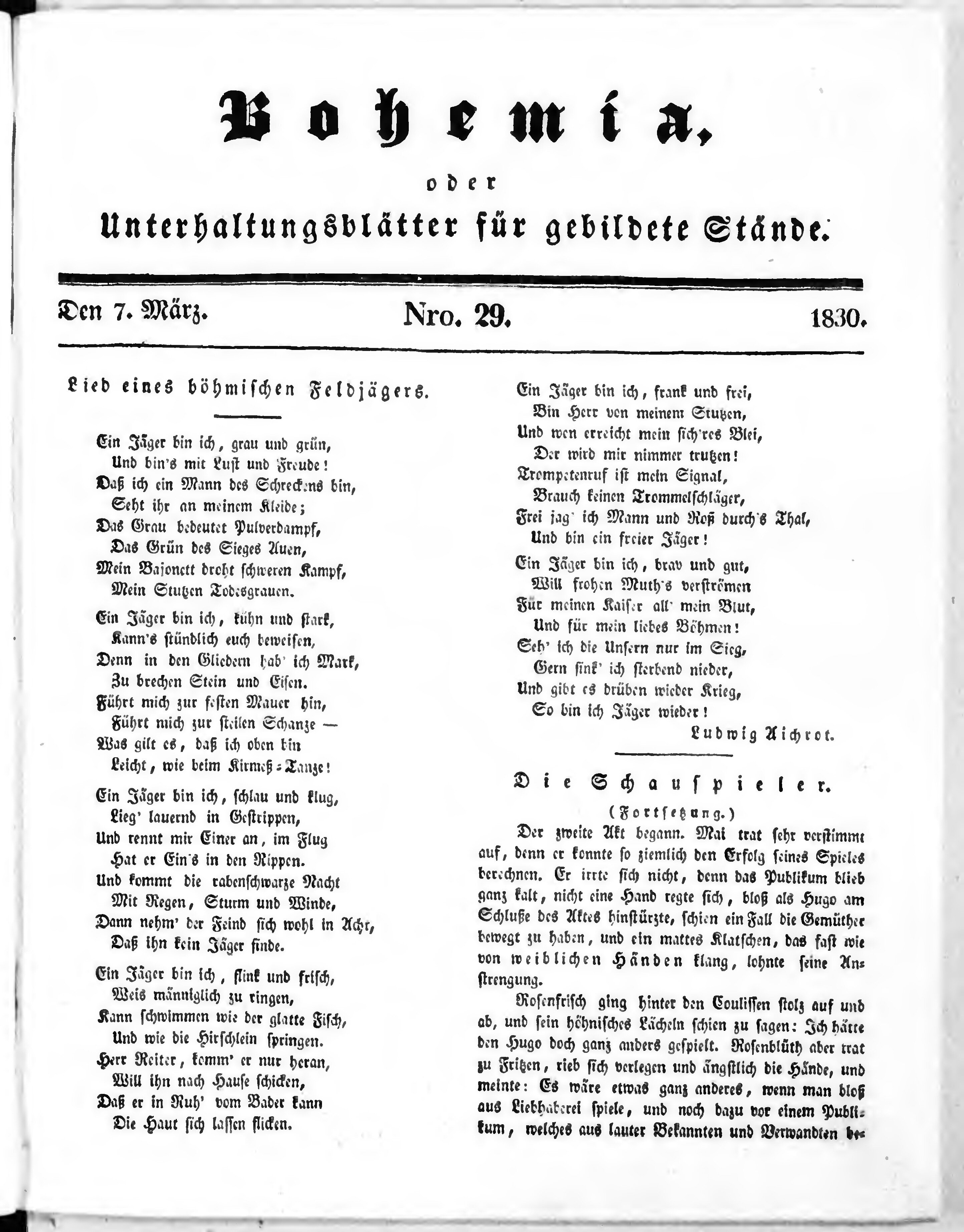 Bohemia, oder Unterhaltungsblätter für gebildete Stände