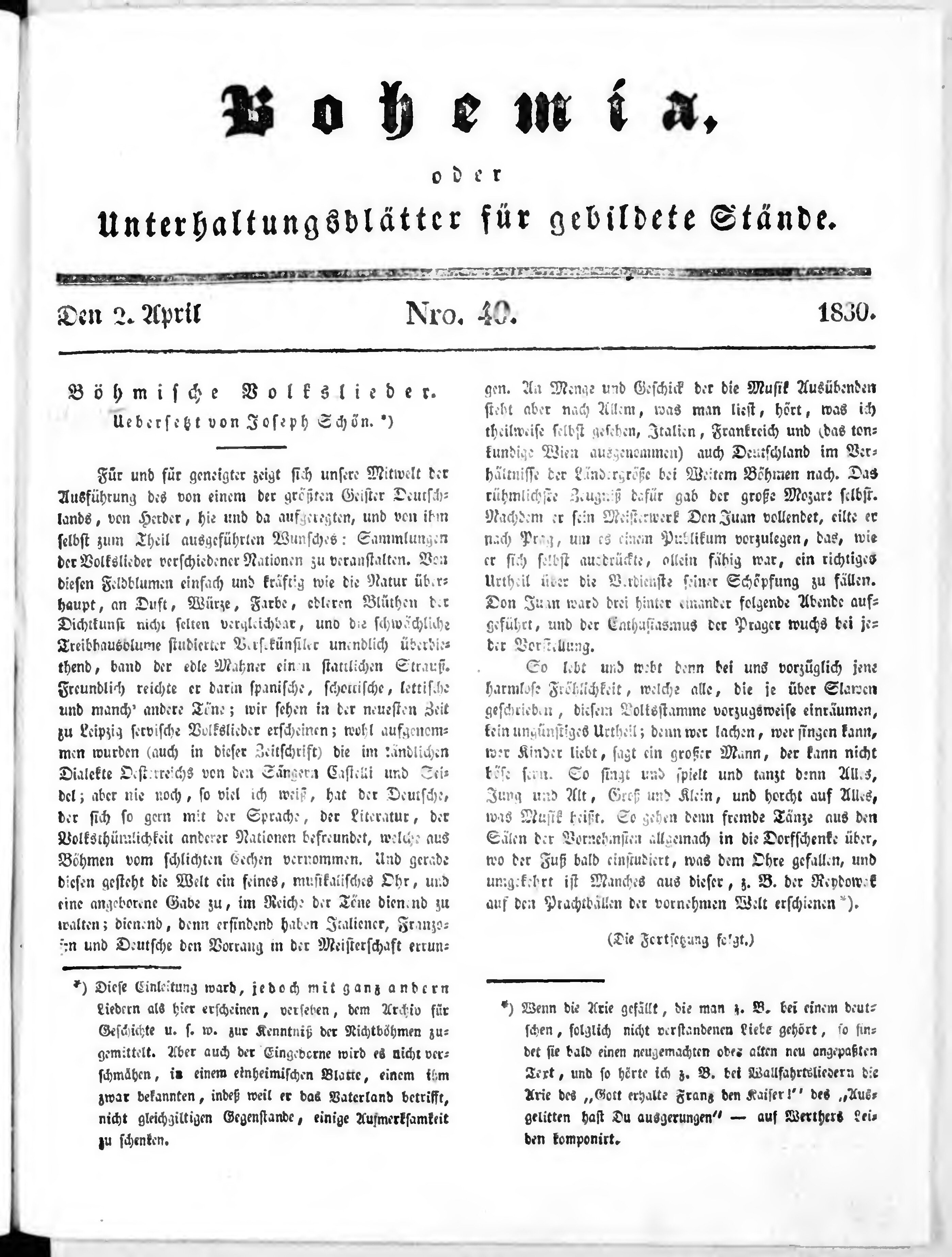 Bohemia, oder Unterhaltungsblätter für gebildete Stände