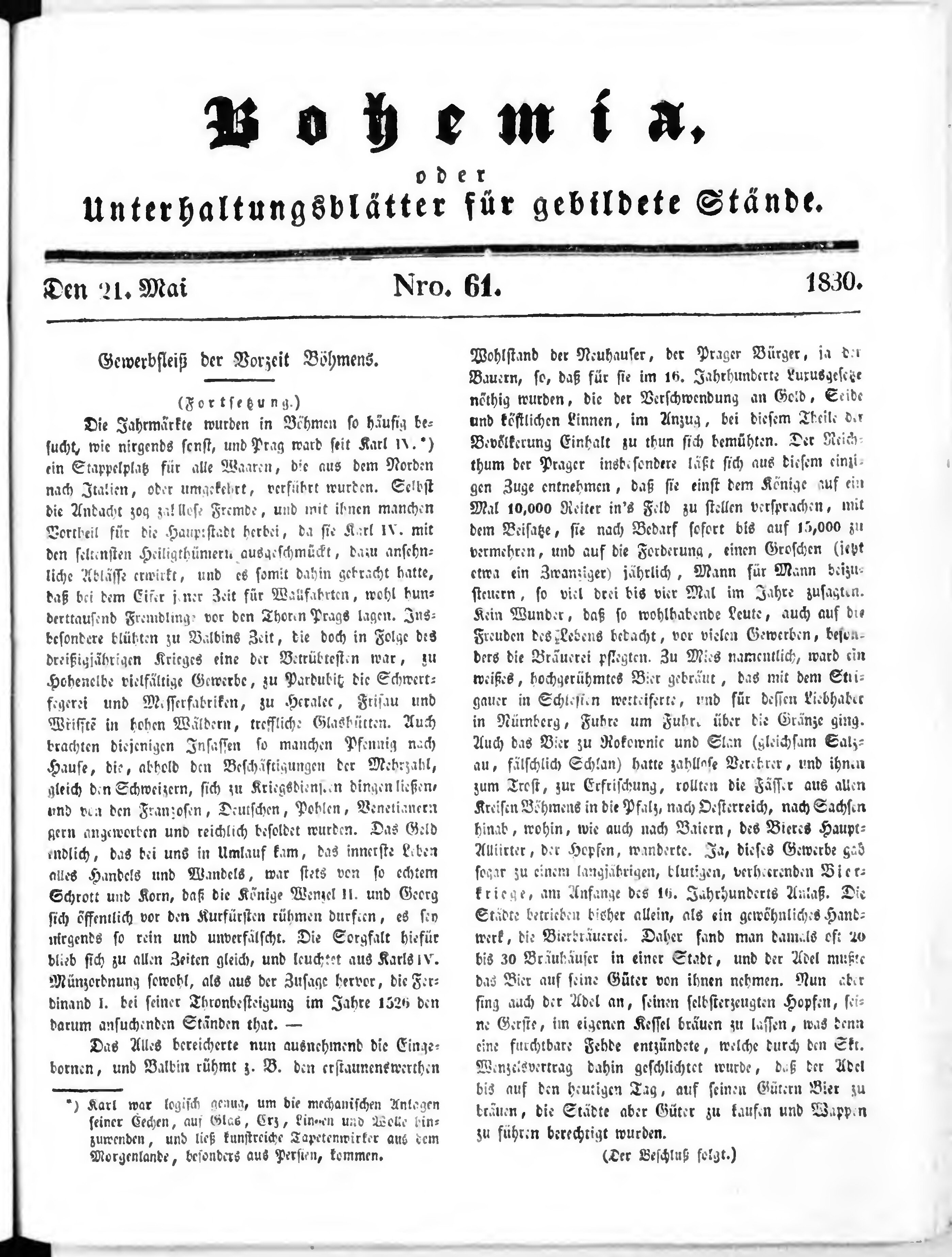 * Datum vydání výtisku: 21.5.1830 Číslo výtisku: 61