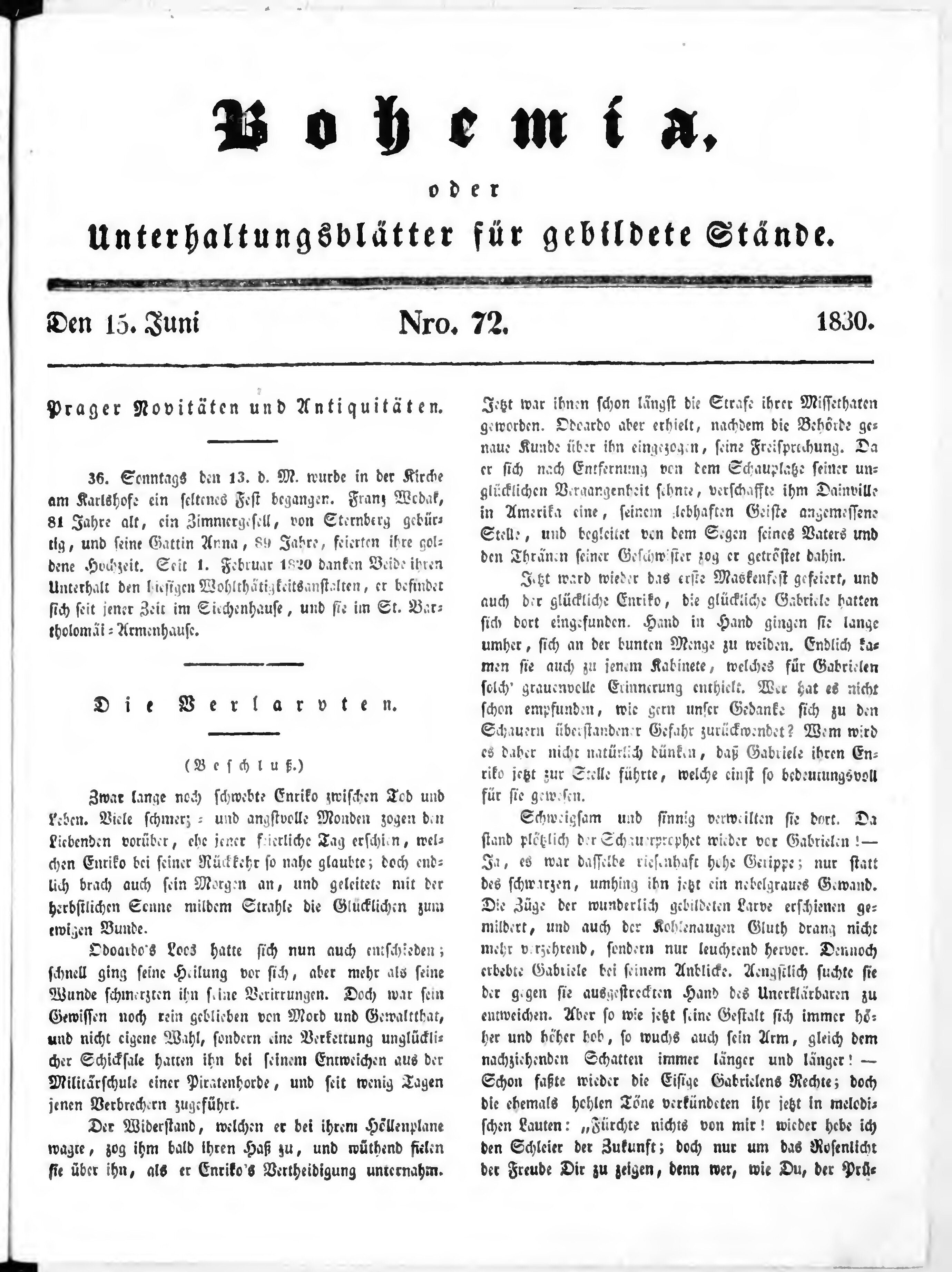 * Datum vydání výtisku: 15.6.1830 Číslo výtisku: 72