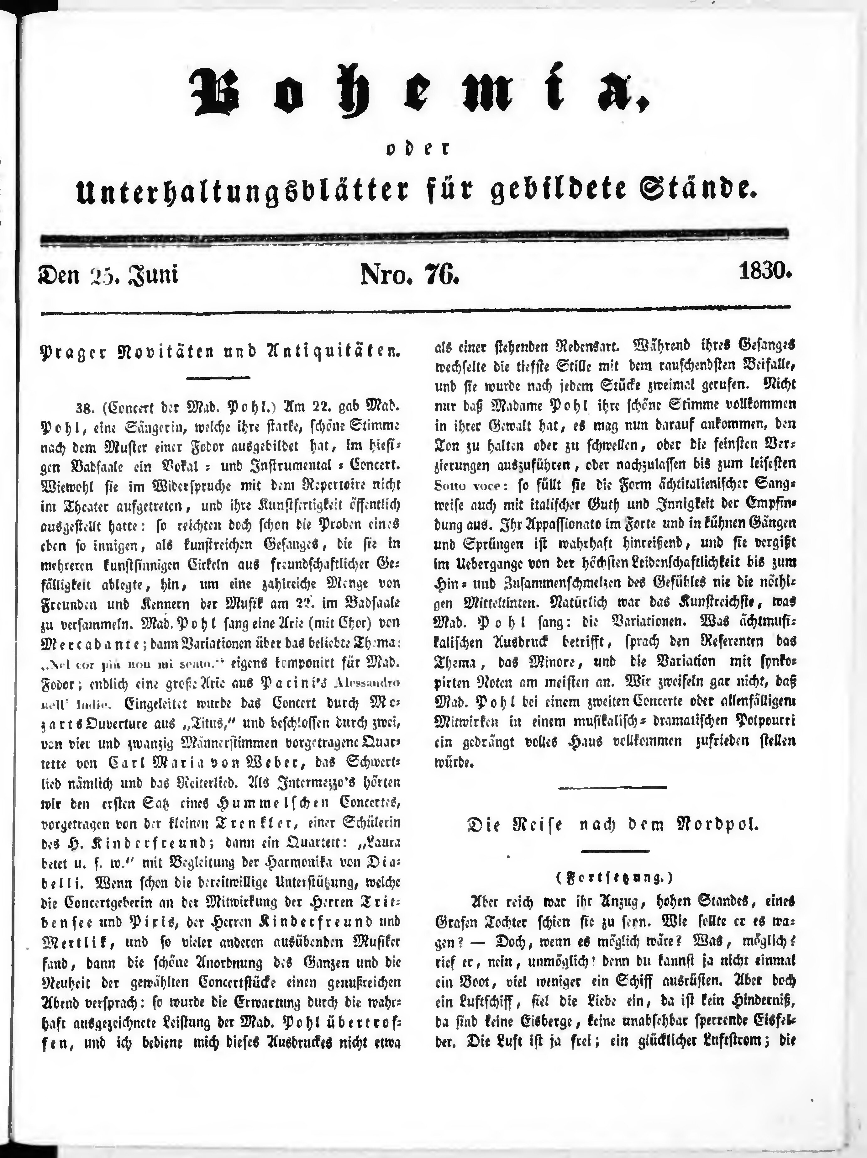* Datum vydání výtisku: 25.6.1830 Číslo výtisku: 76