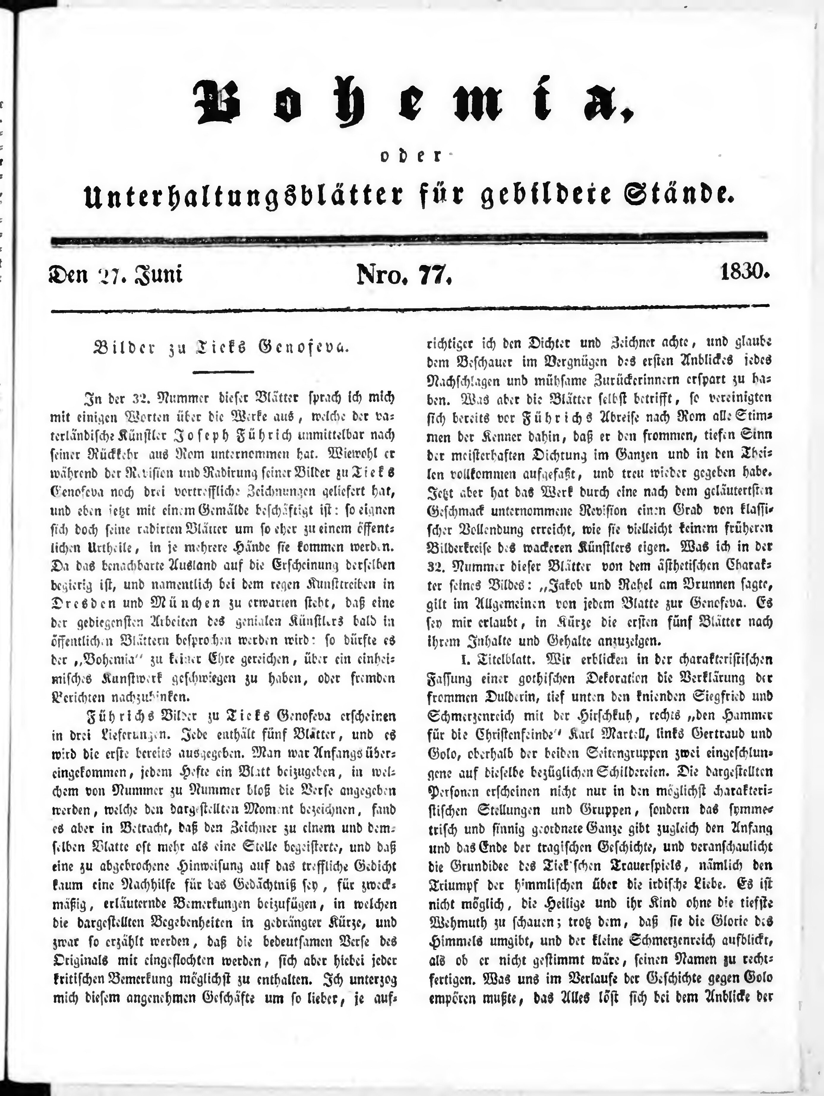 * Datum vydání výtisku: 27.6.1830 Číslo výtisku: 77