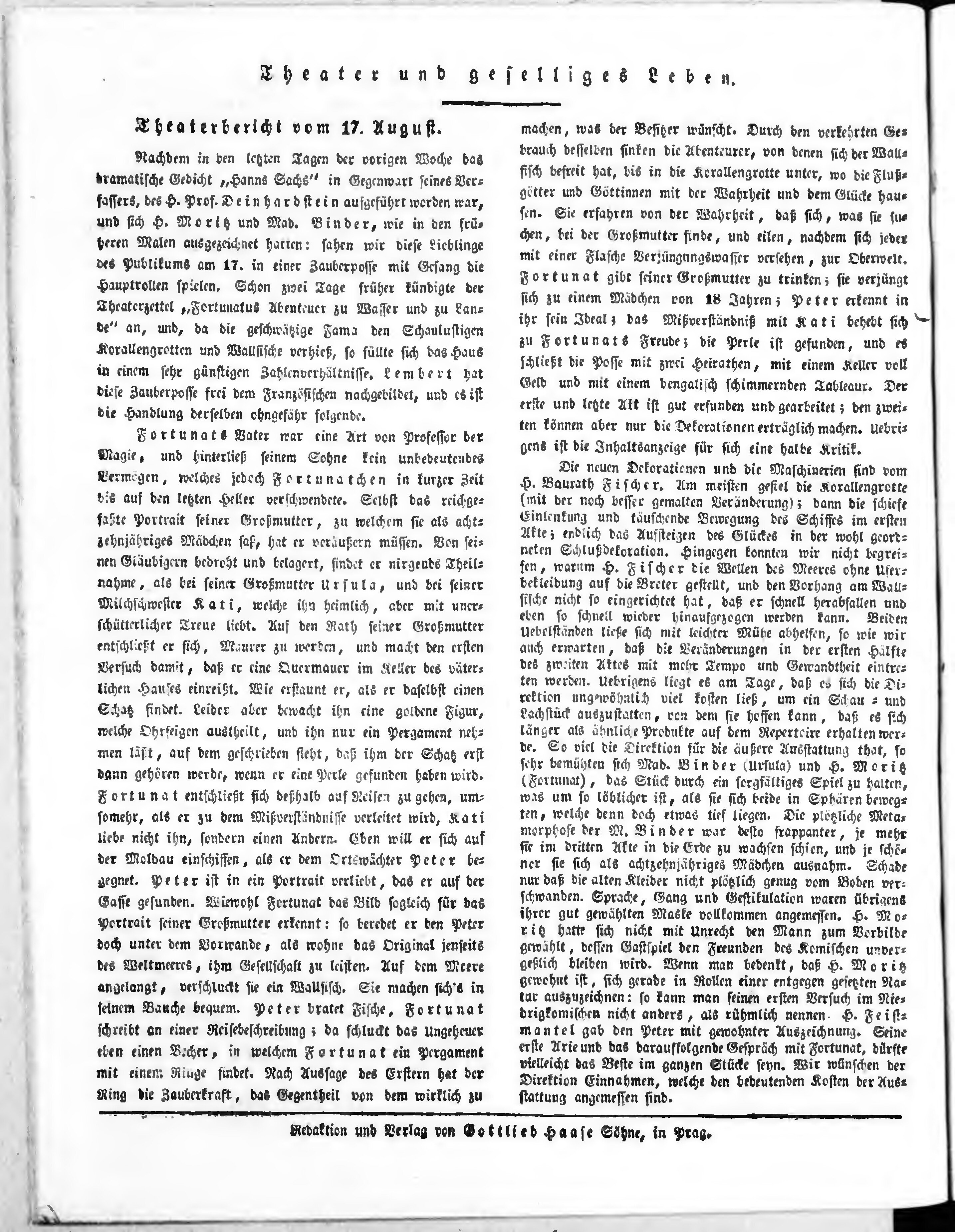 Bohemia, oder Unterhaltungsblätter für gebildete Stände
