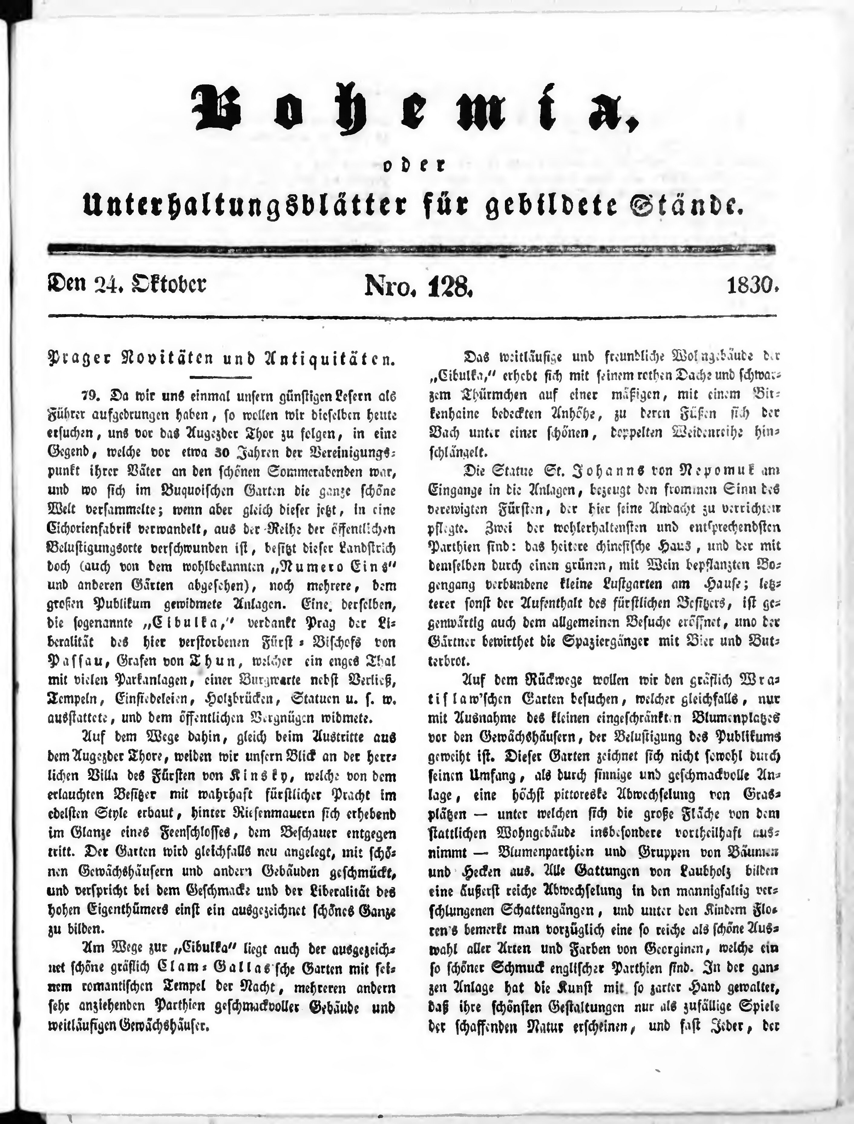 Bohemia, oder Unterhaltungsblätter für gebildete Stände