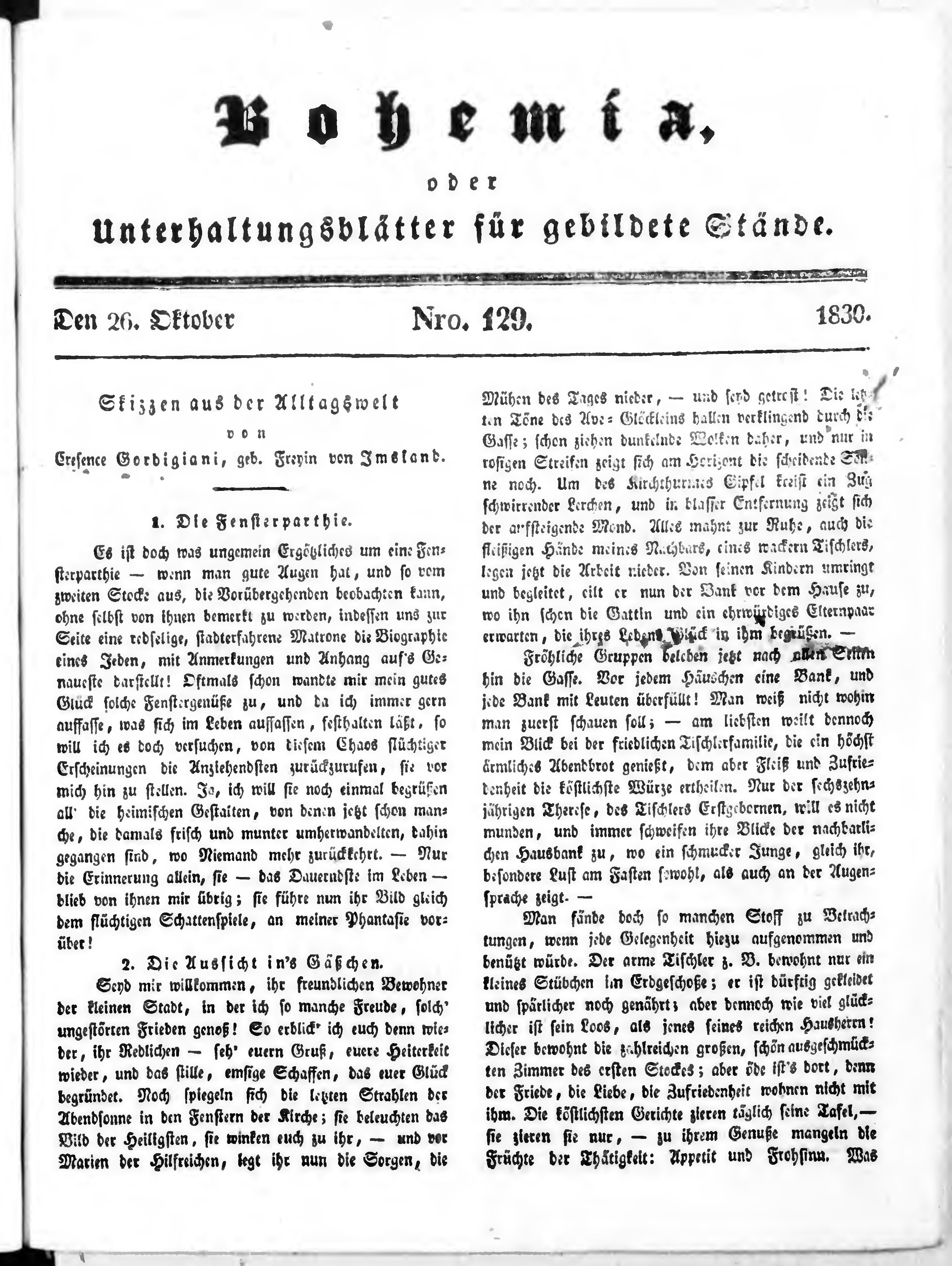 Bohemia, oder Unterhaltungsblätter für gebildete Stände