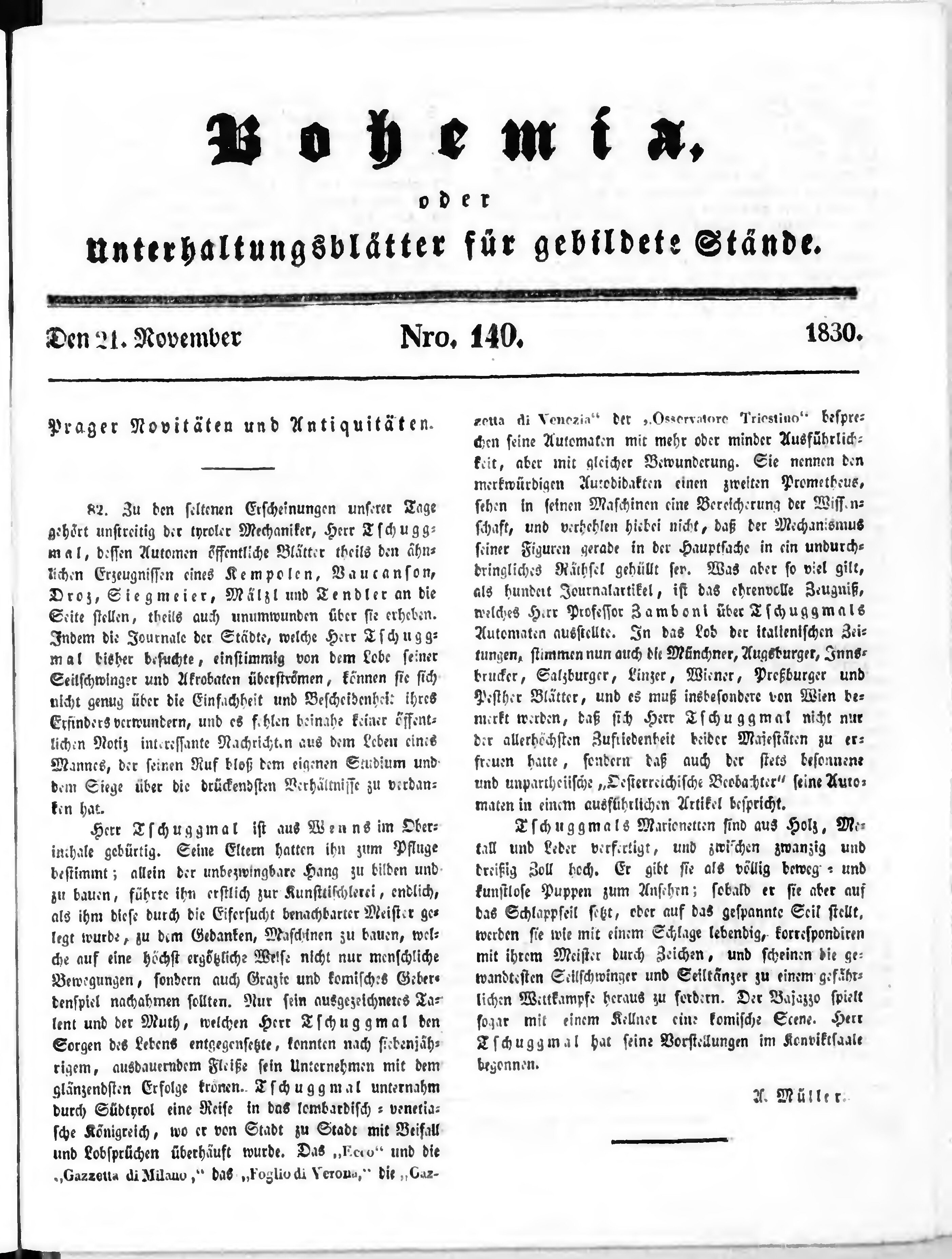 Bohemia, oder Unterhaltungsblätter für gebildete Stände