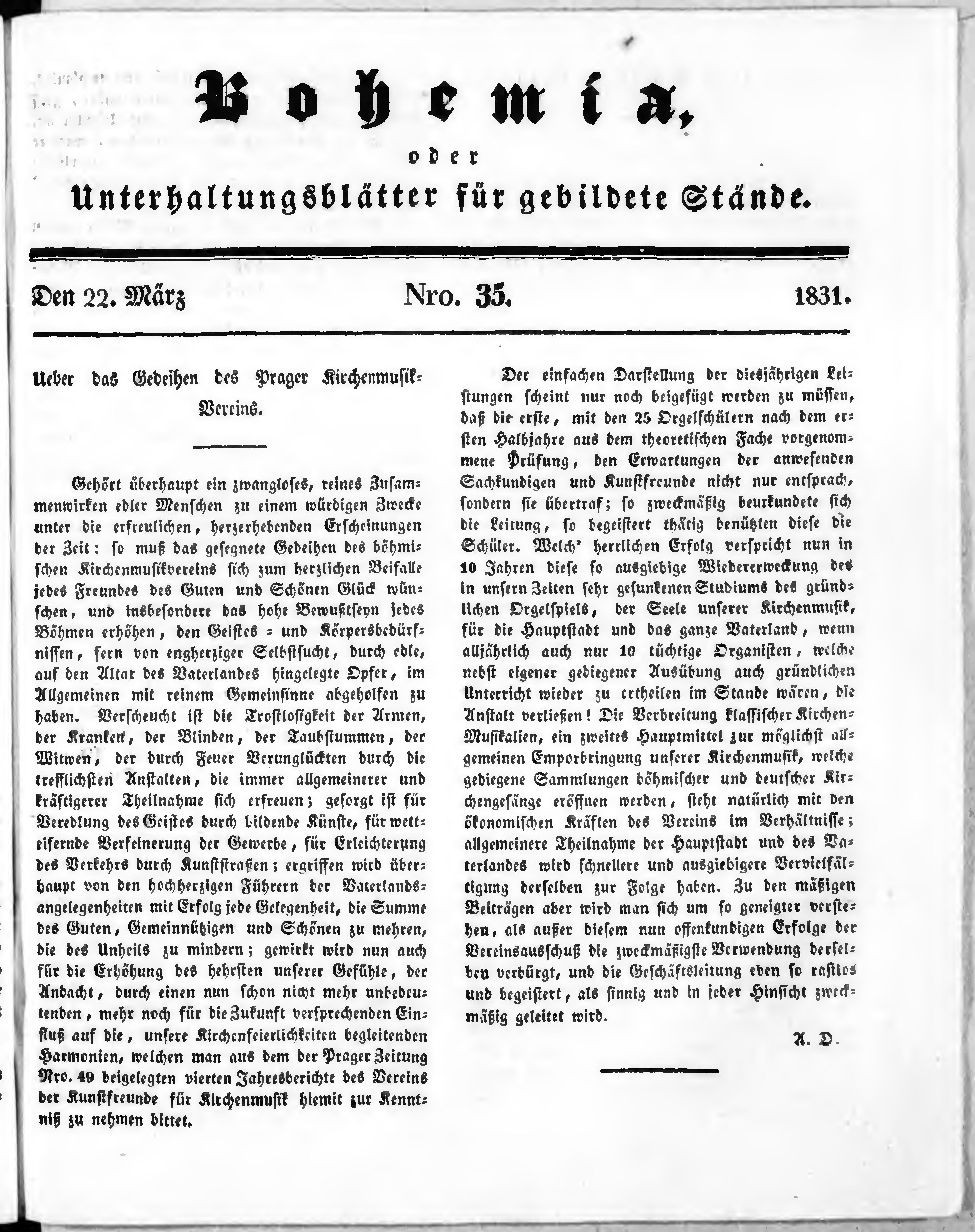 Bohemia, oder Unterhaltungsblätter für gebildete Stände