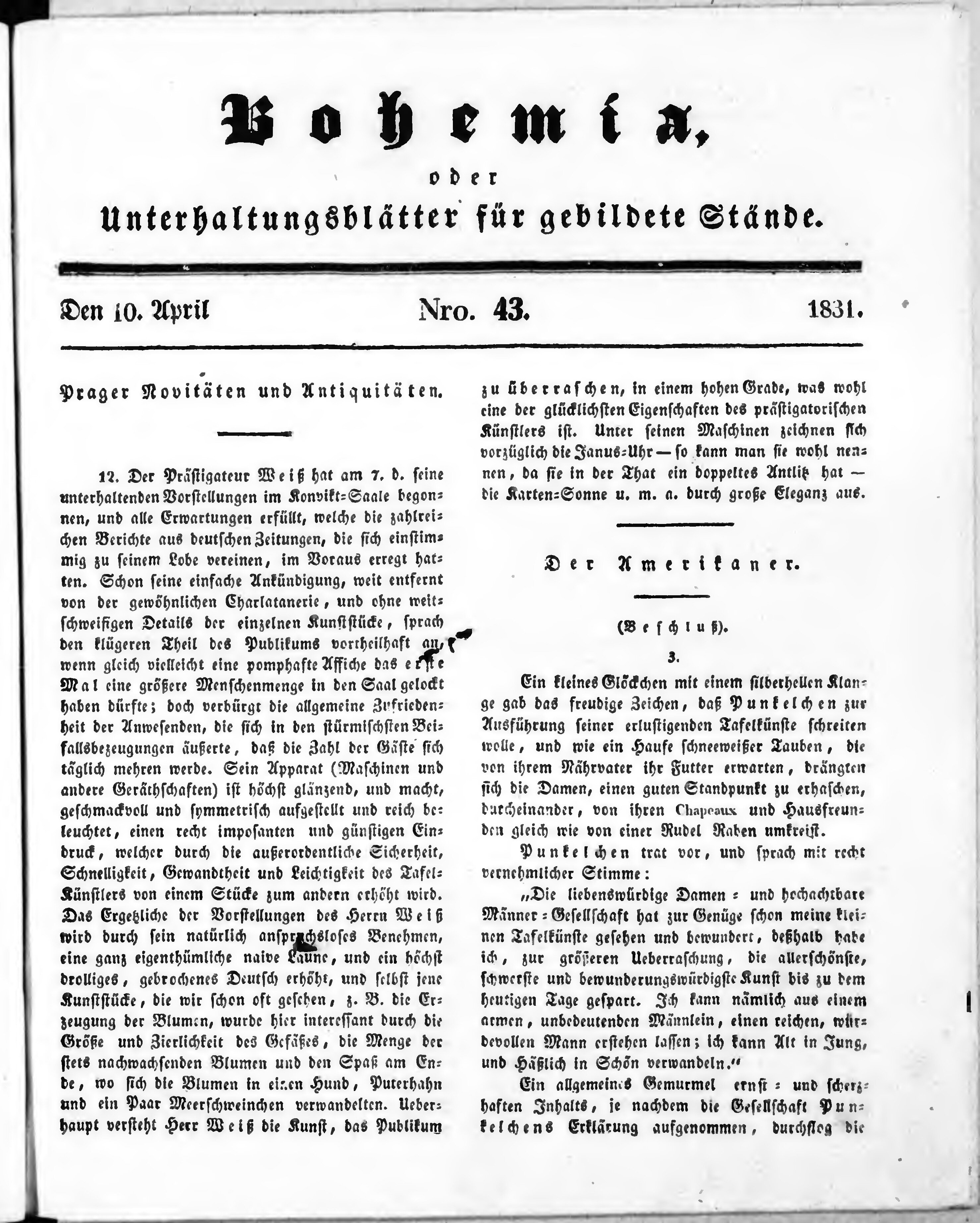 * Datum vydání výtisku: 10.4.1831 Číslo výtisku: 43
