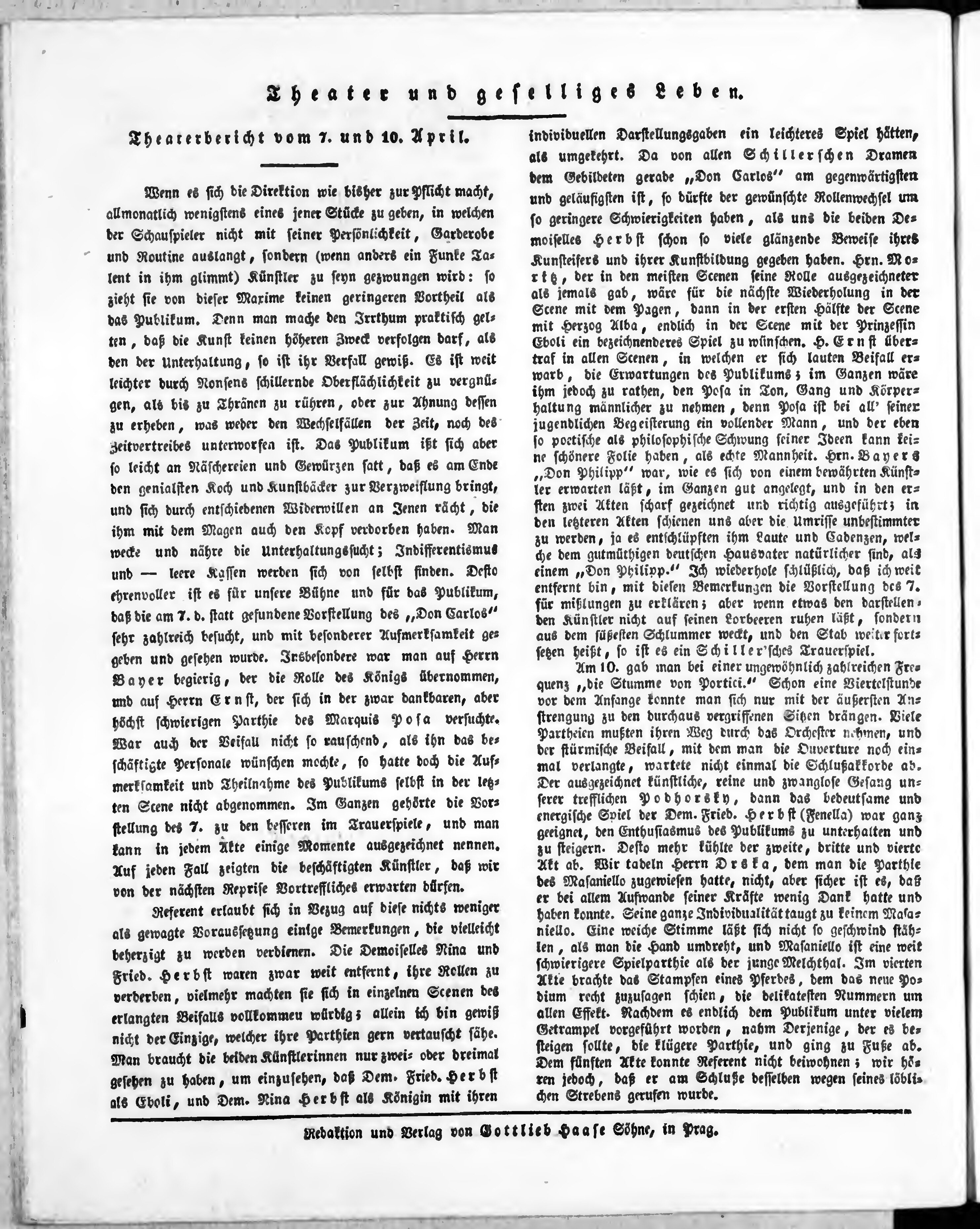 Bohemia, oder Unterhaltungsblätter für gebildete Stände