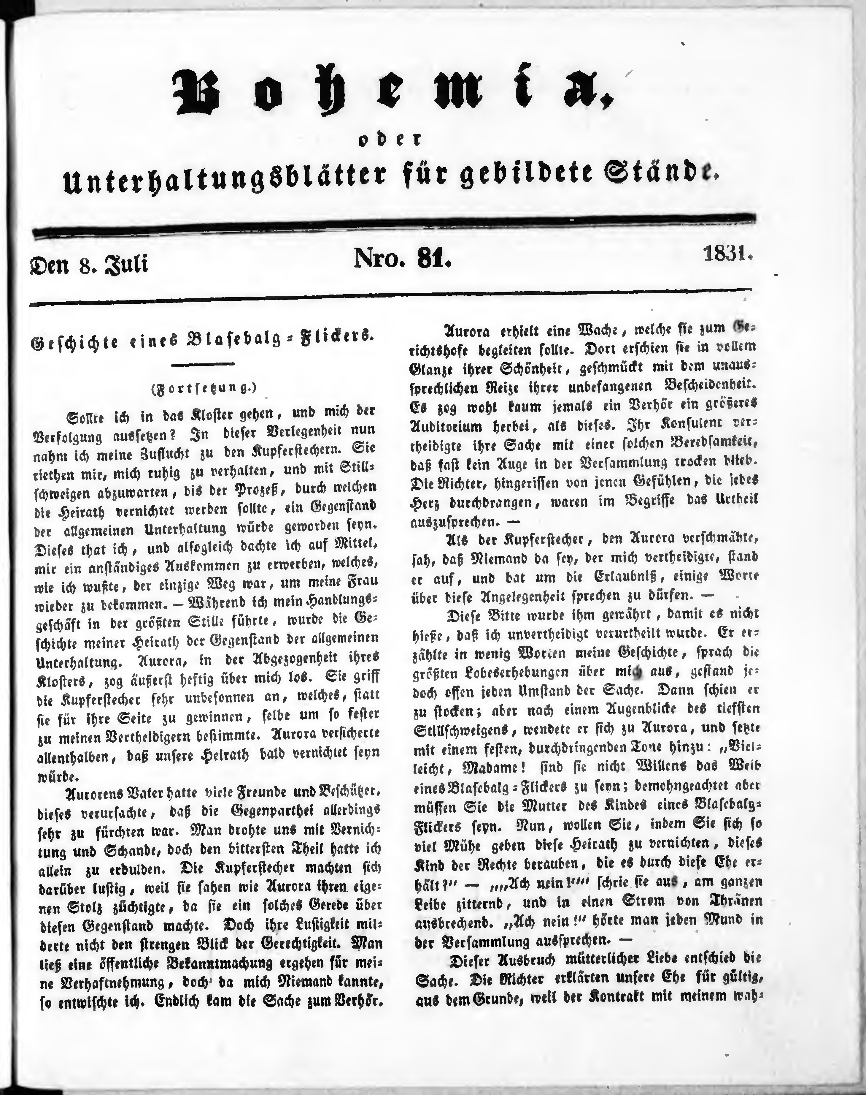Bohemia, oder Unterhaltungsblätter für gebildete Stände
