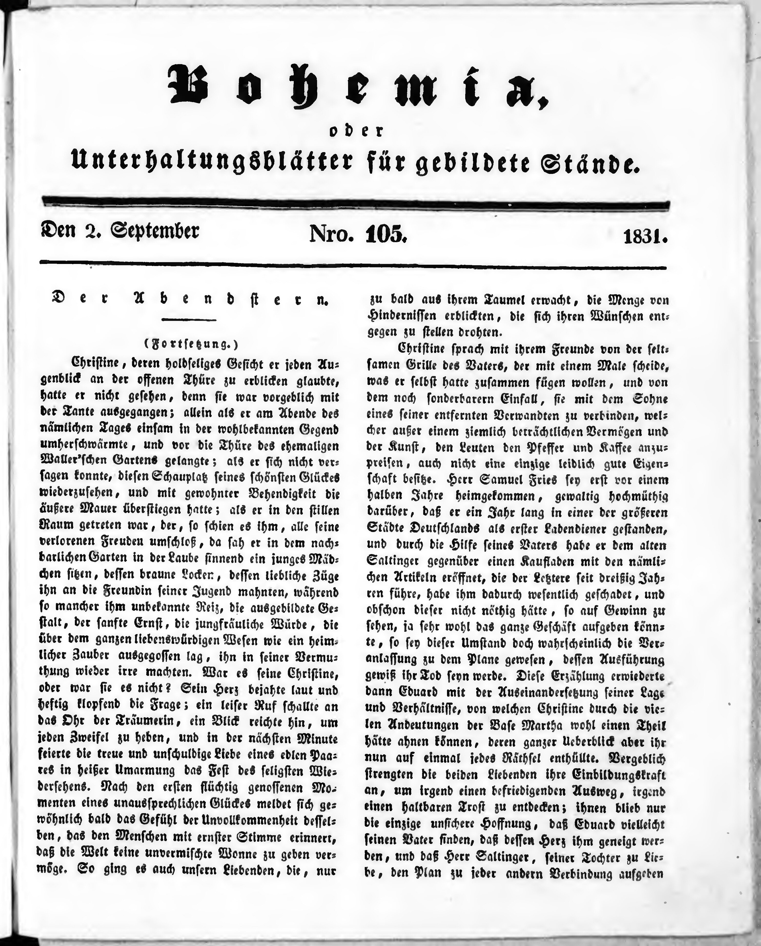 * Datum vydání výtisku: 1.9.1831 Číslo výtisku: 105
