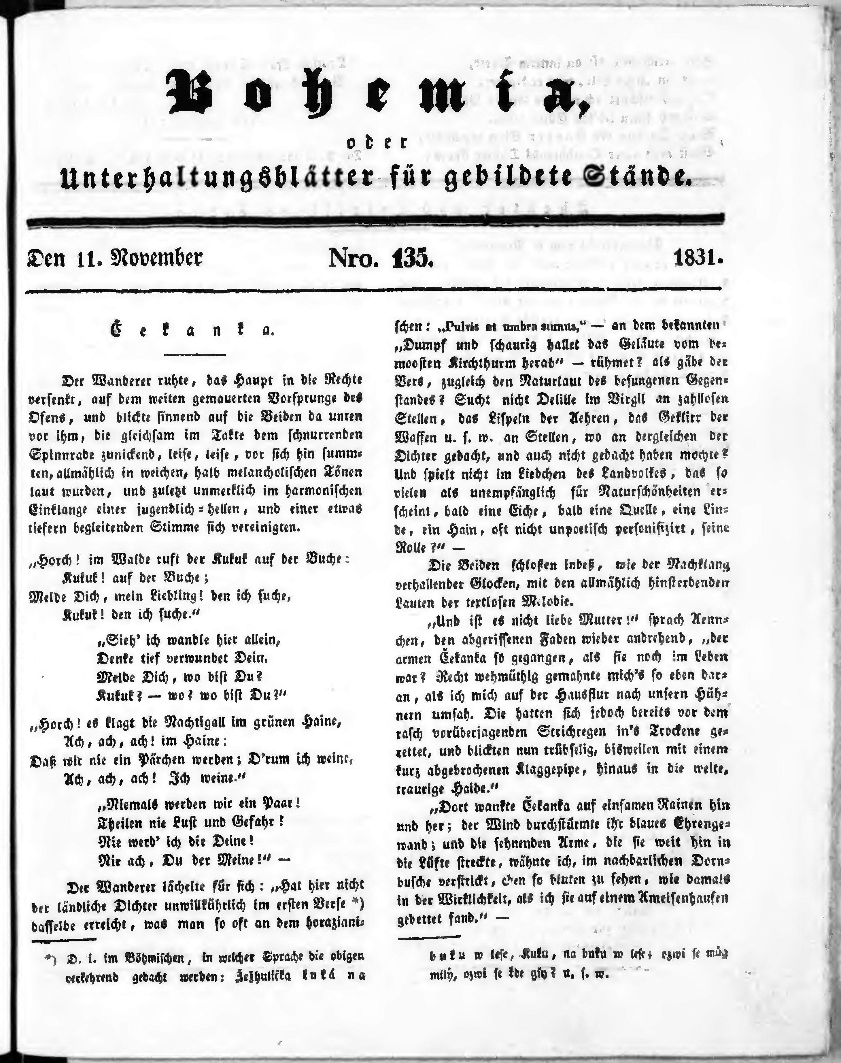 * Datum vydání výtisku: 11.11.1831 Číslo výtisku: 135