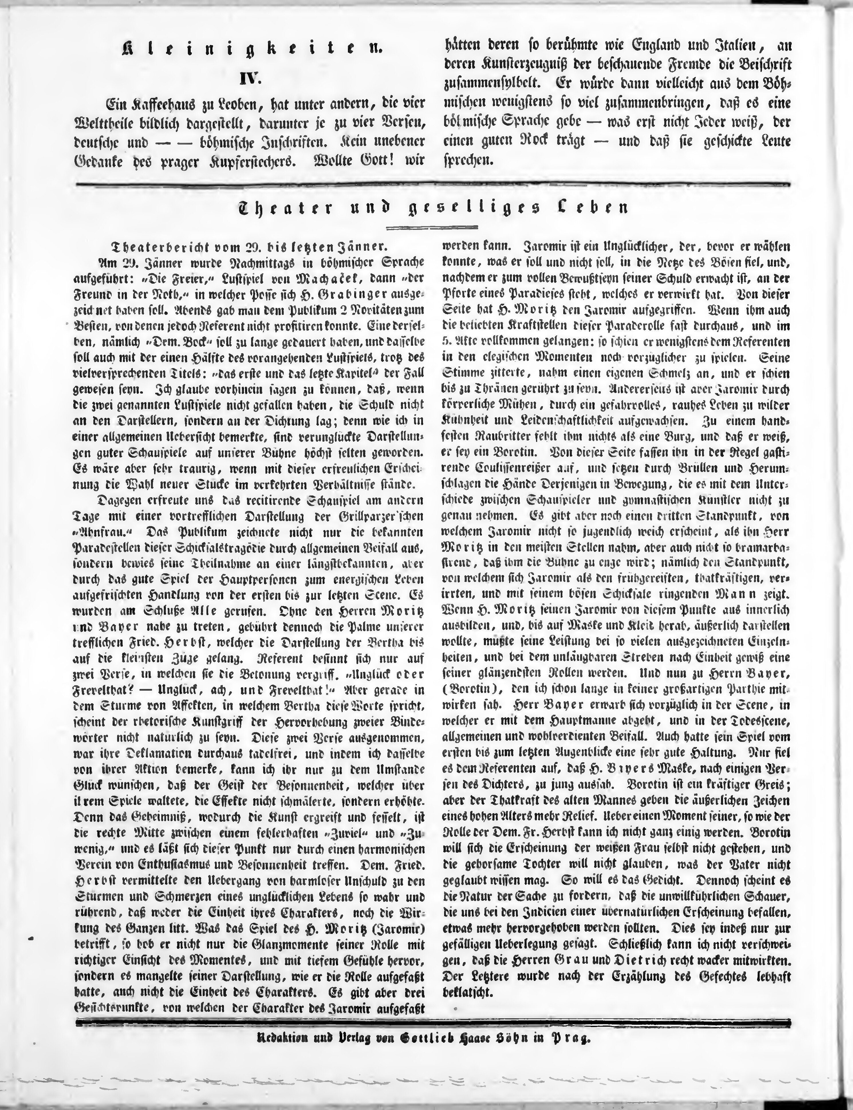 Bohemia, oder Unterhaltungsblätter für gebildete Stände