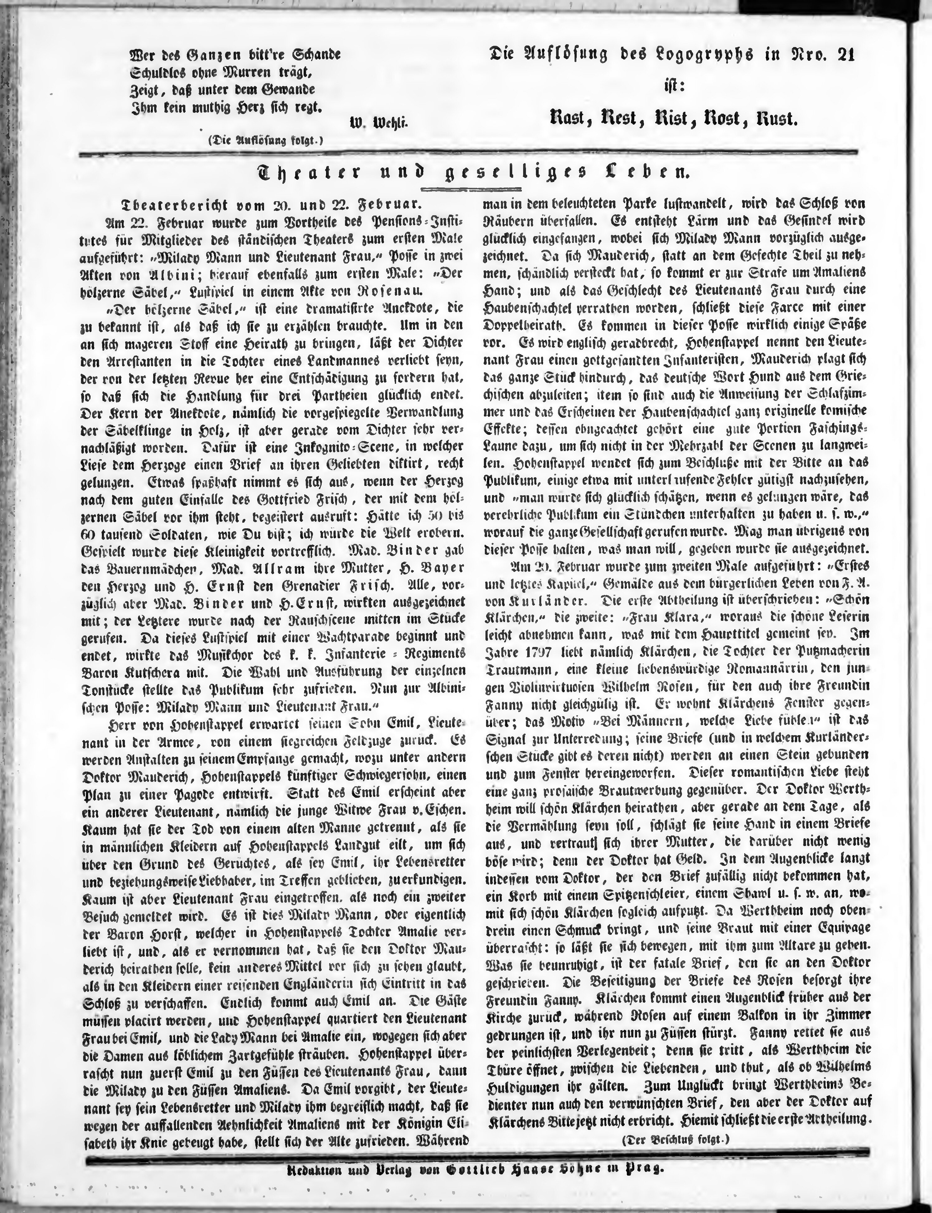 Bohemia, oder Unterhaltungsblätter für gebildete Stände