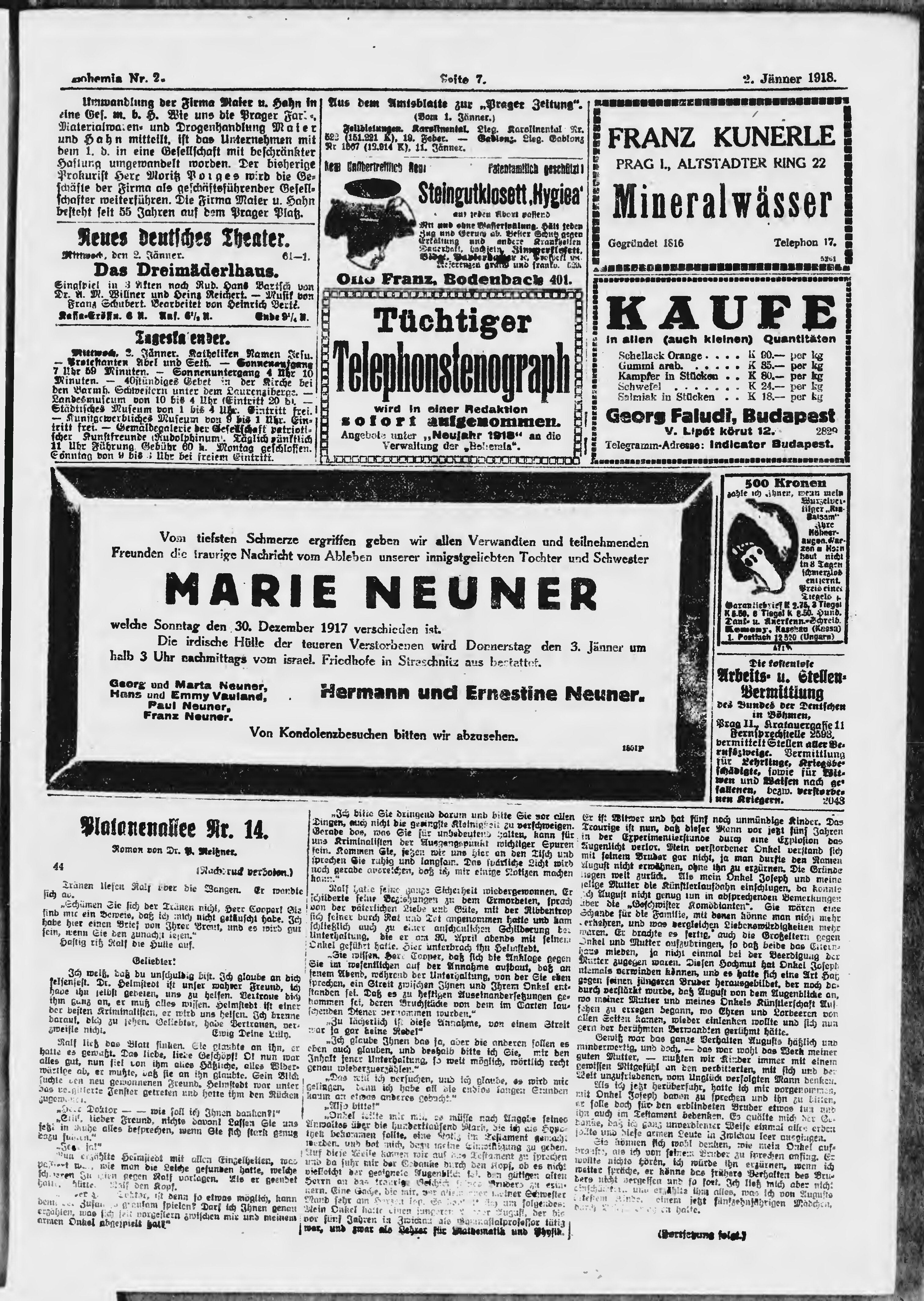 * Datum vydání výtisku: 2.1.1918 Číslo výtisku: 2 Poznámky k výtisku: ranní vydání;