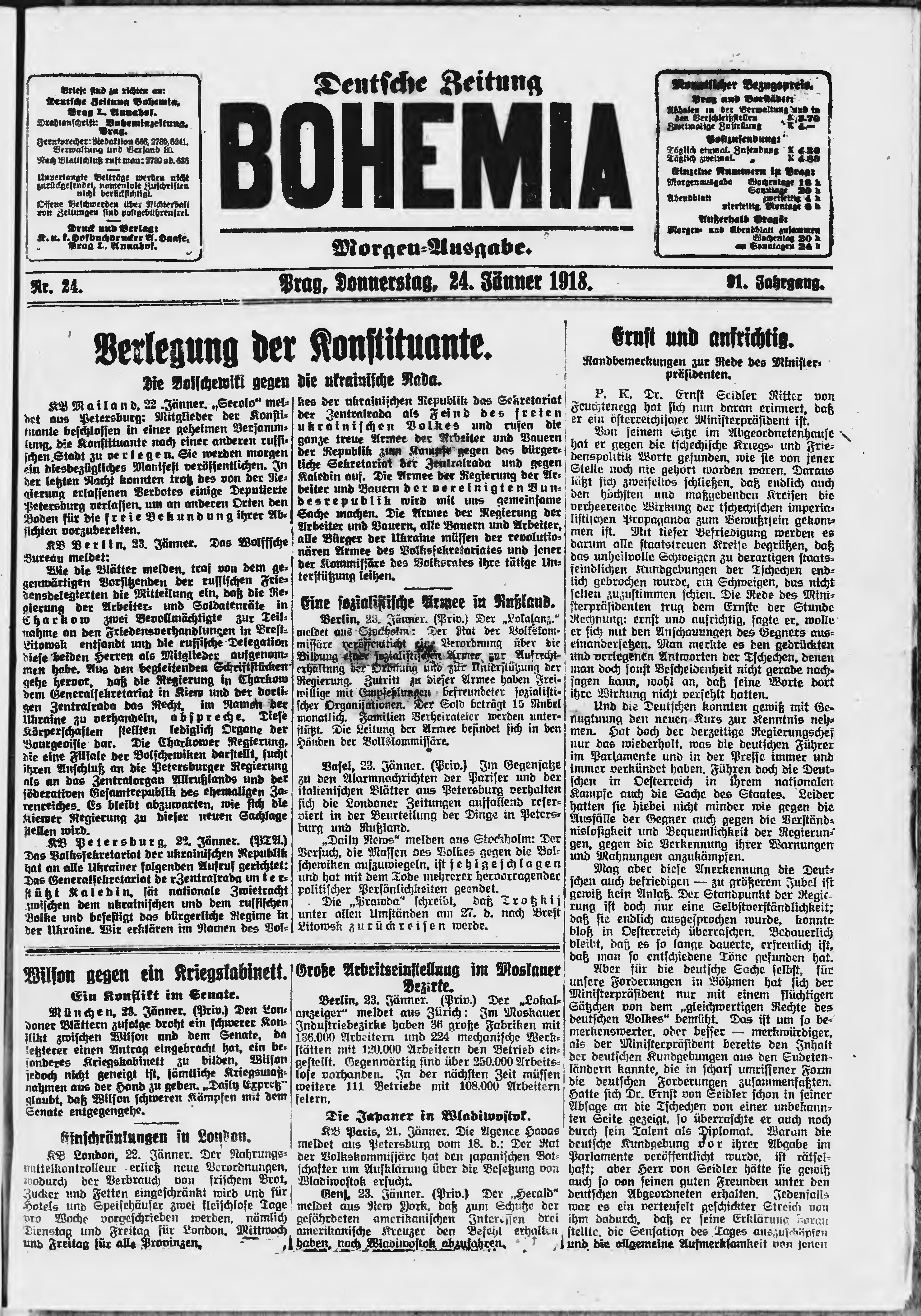 * Datum vydání výtisku: 24.1.1918 Číslo výtisku: 24 Poznámky k výtisku: ranní vydání;