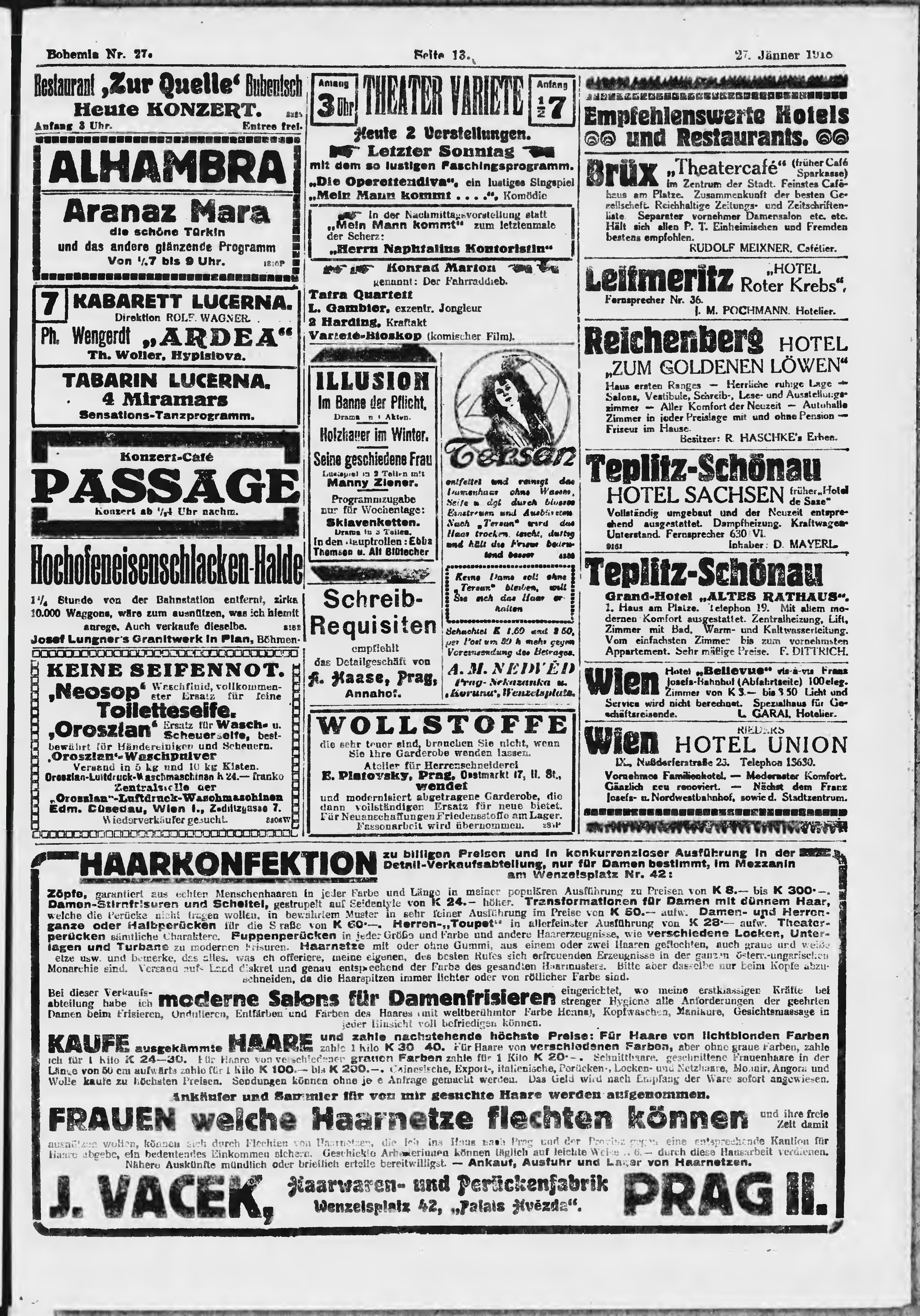 * Datum vydání výtisku: 27.1.1918 Číslo výtisku: 27 Poznámky k výtisku: ranní vydání;