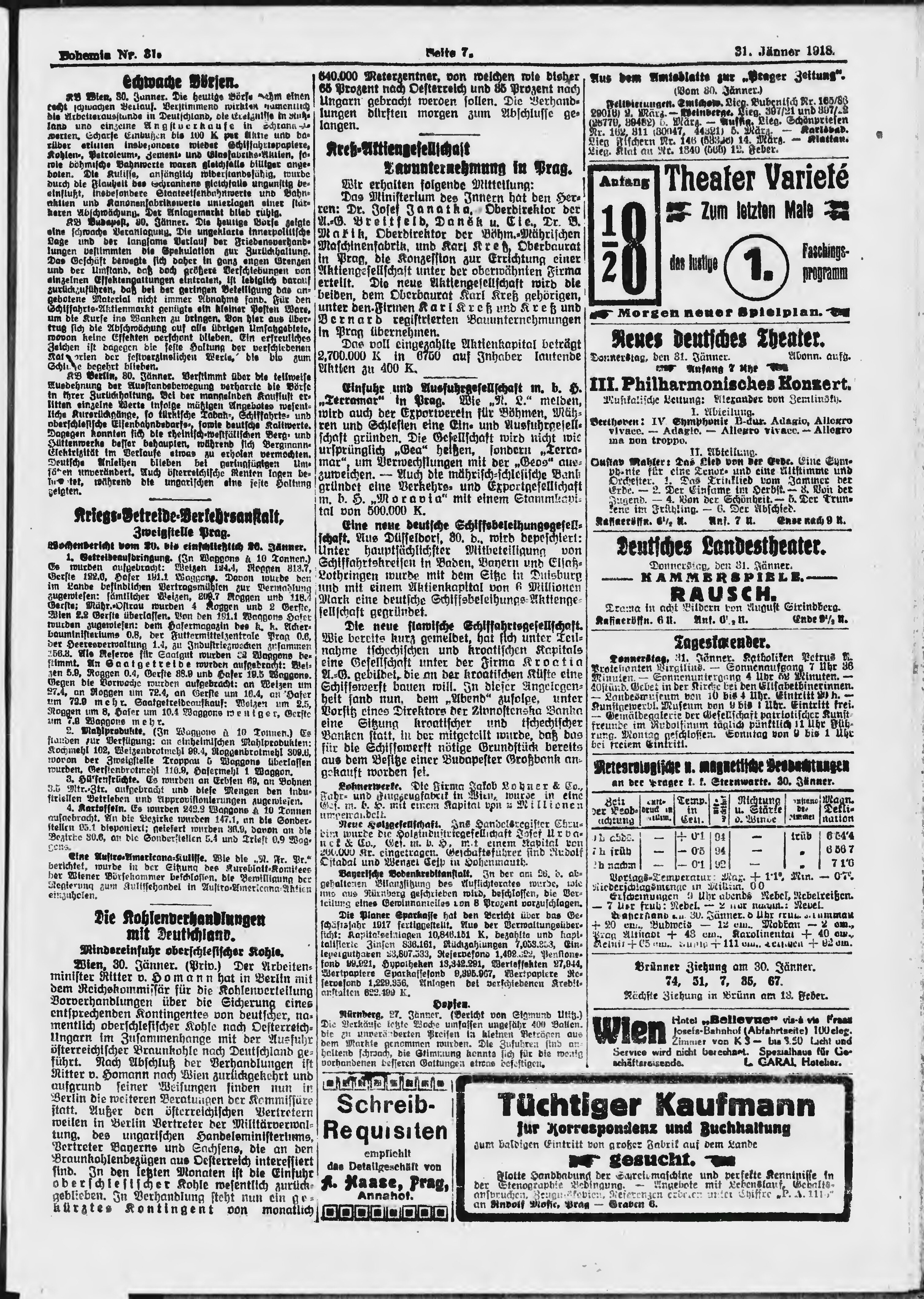 * Datum vydání výtisku: 31.1.1918 Číslo výtisku: 31 Poznámky k výtisku: ranní vydání;