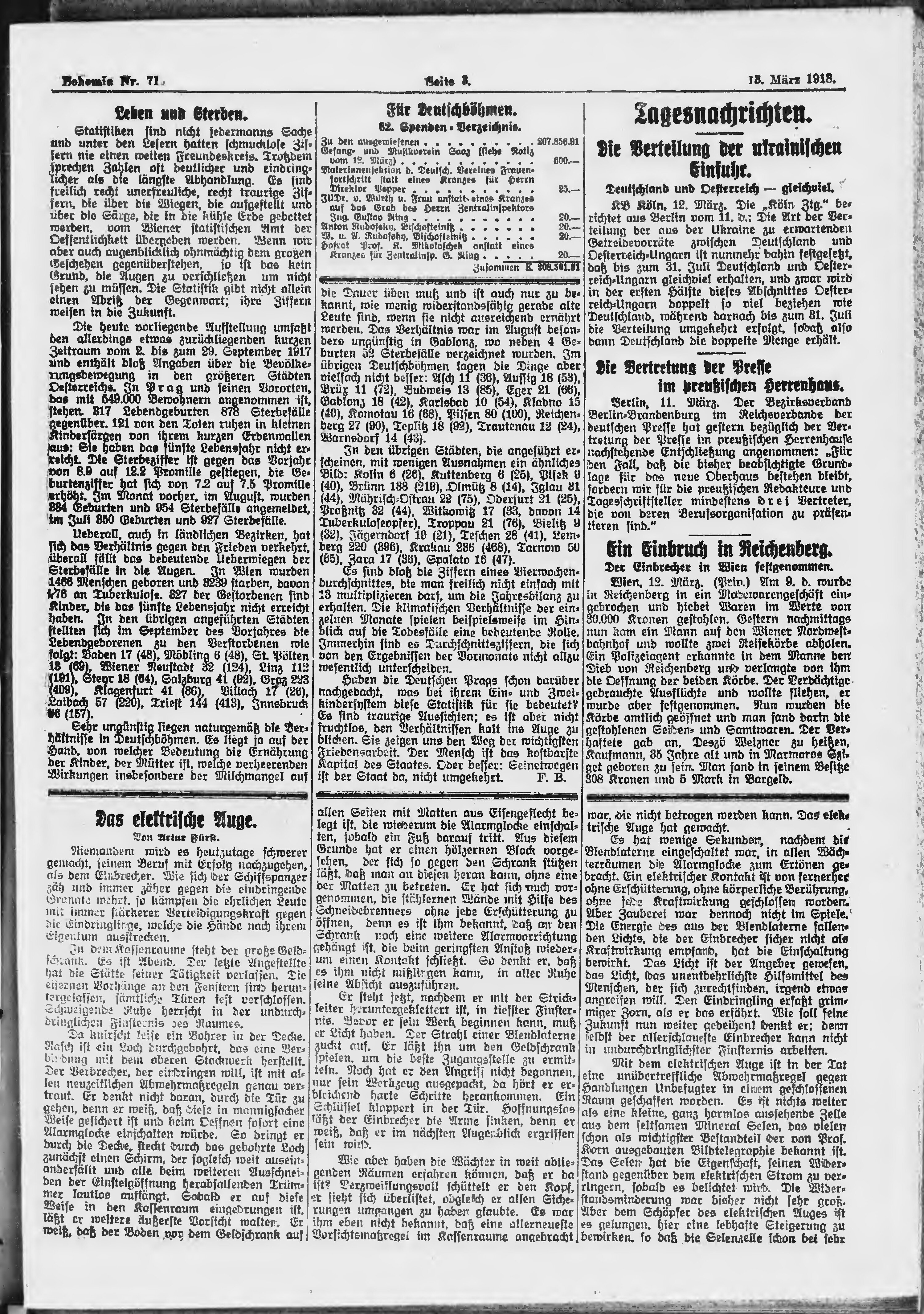 * Datum vydání výtisku: 13.3.1918 Číslo výtisku: 71 Poznámky k výtisku: ranní vydání;