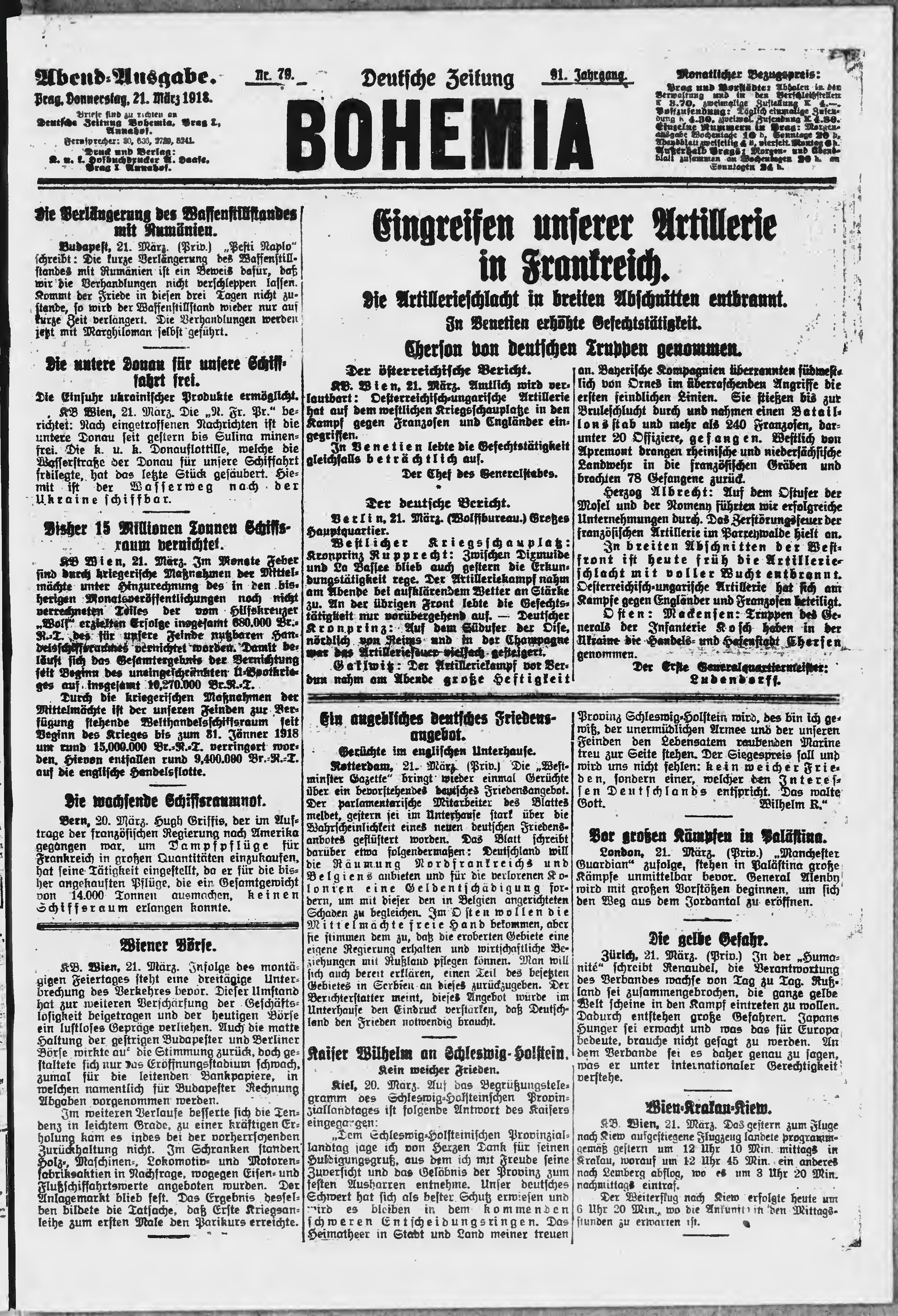 * Datum vydání výtisku: 21.3.1918 Číslo výtisku: 79 Poznámky k výtisku: večerní vydání;