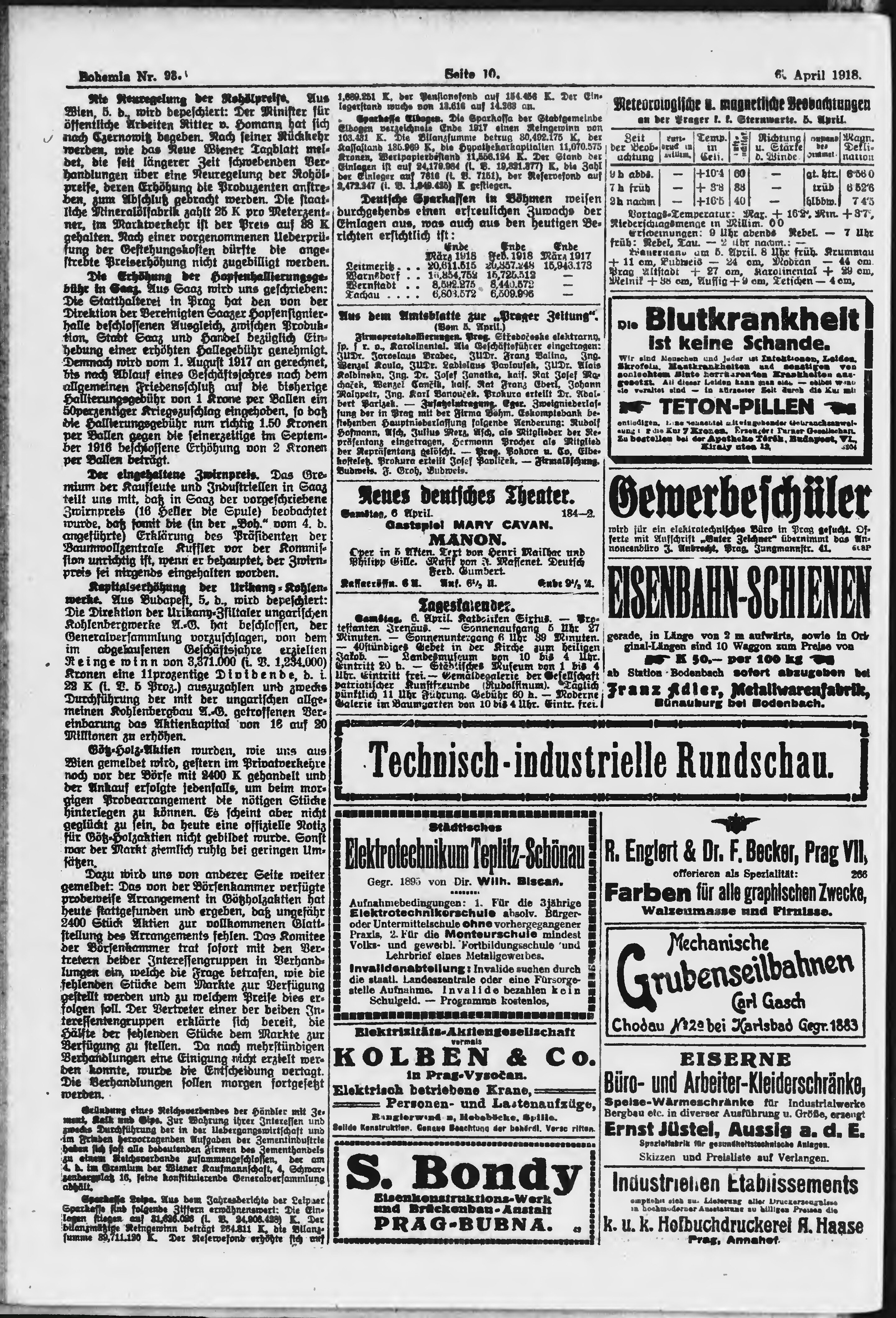 * Datum vydání výtisku: 6.4.1918 Číslo výtisku: 93 Poznámky k výtisku: ranní vydání;