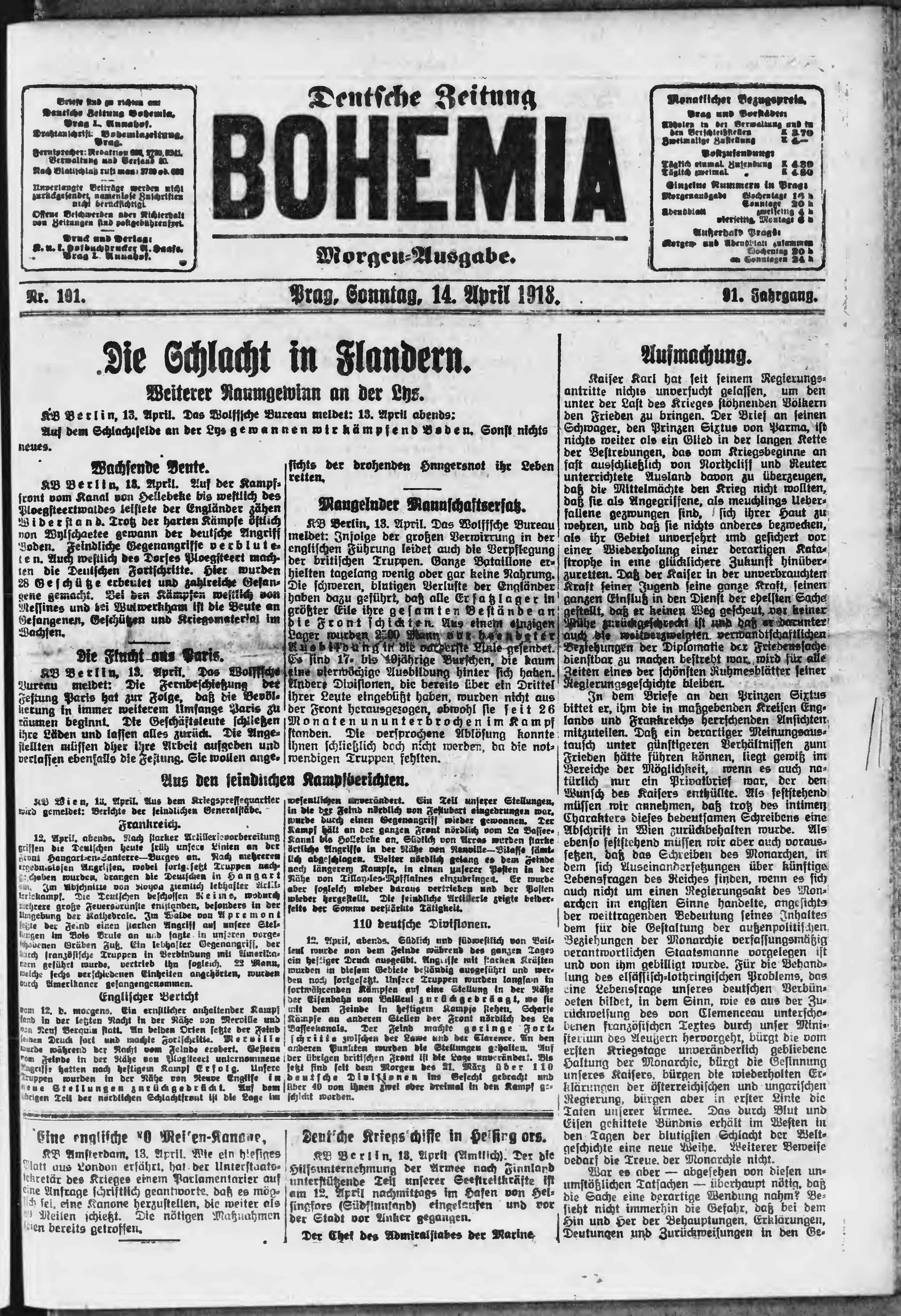 * Datum vydání výtisku: 14.4.1918 Číslo výtisku: 101 Poznámky k výtisku: ranní vydání;