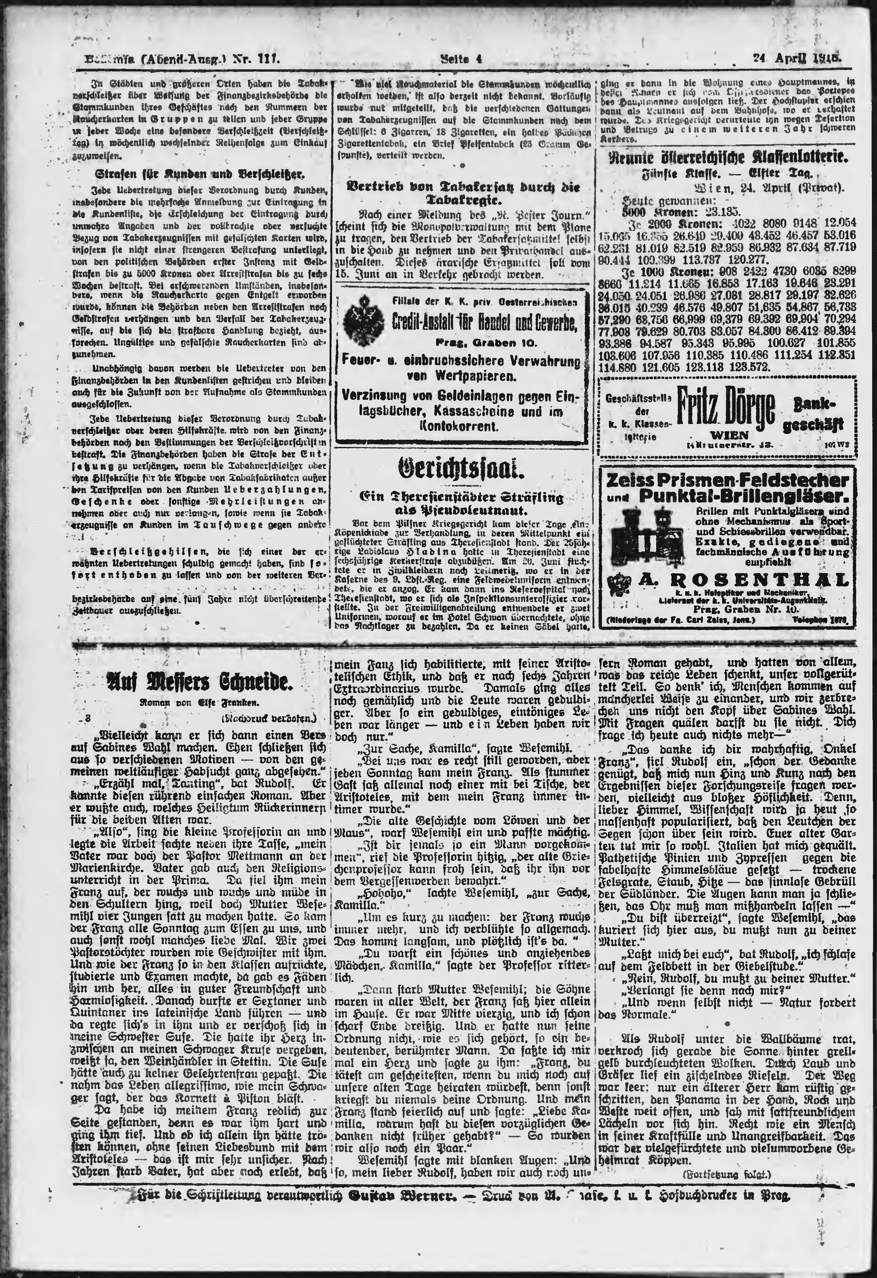 * Datum vydání výtisku: 24.4.1918 Číslo výtisku: 111 Poznámky k výtisku: večerní vydání;