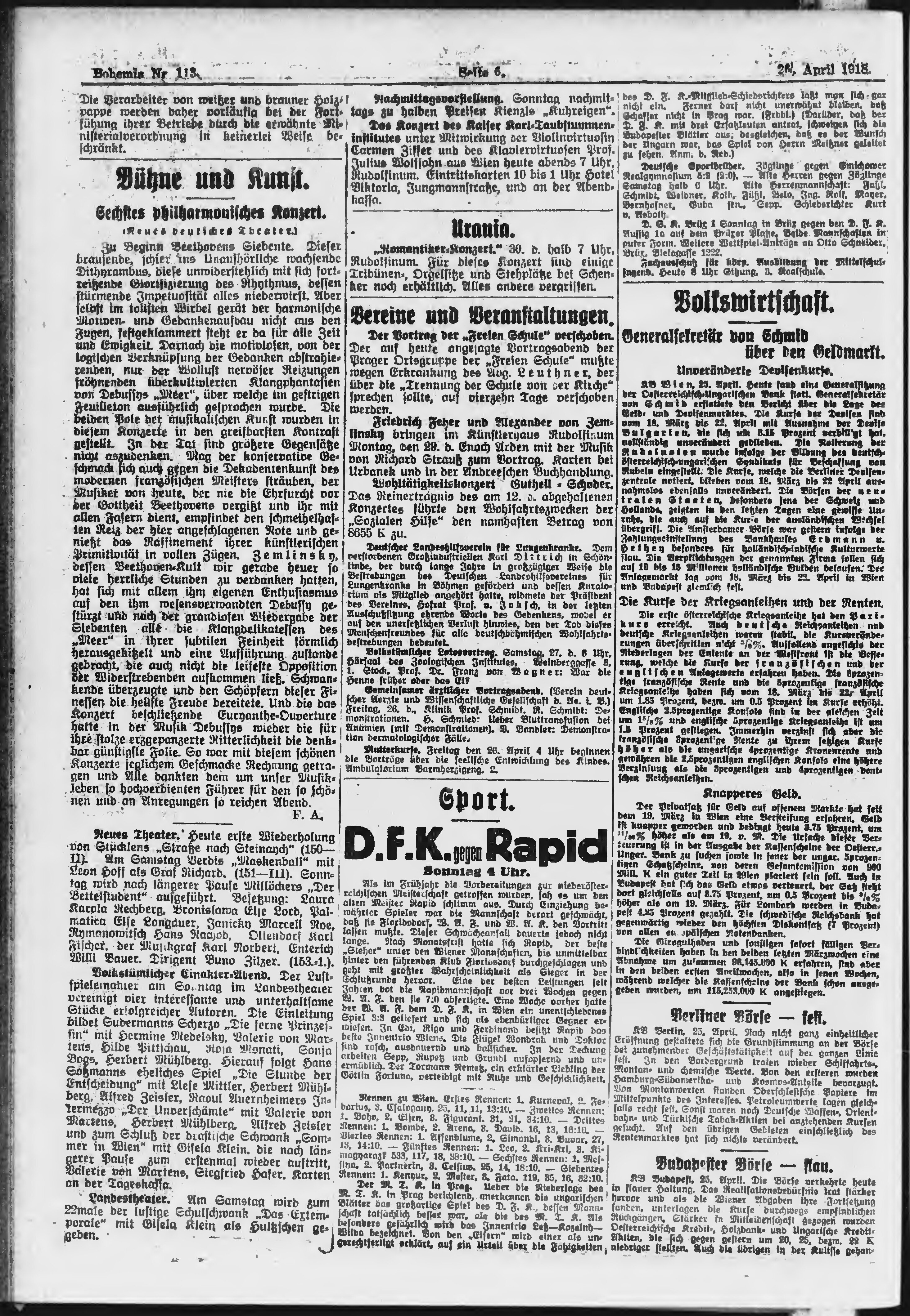 * Datum vydání výtisku: 26.4.1918 Číslo výtisku: 113 Poznámky k výtisku: ranní vydání;